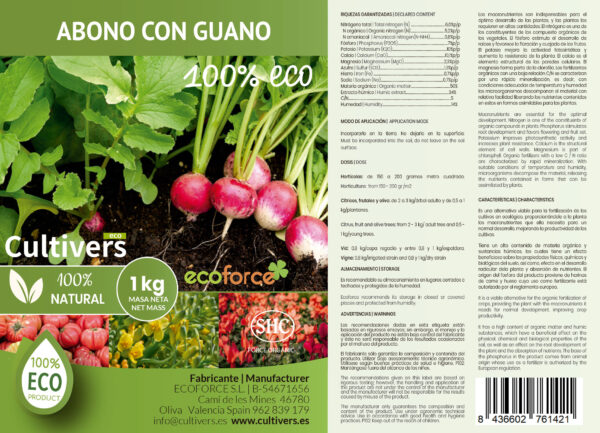 CULTIVERS Abono con Guano Pellets Ecológico.