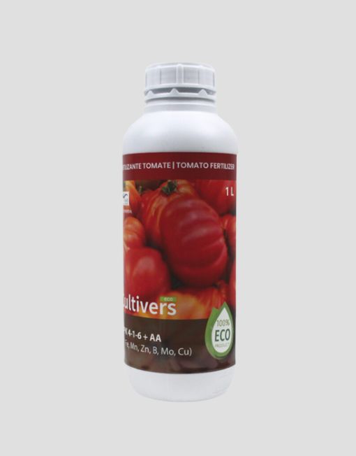 Abono Tomates Líquido Ecológico. El fertilizante ecológico tomate es un formulado orgánico de acción inmediata, desarrollado para el aporte continuo de nutrientes a lo largo del ciclo. Contiene aminoácidos para la mejora del crecimiento de la planta y del fruto. Boro y Molibdeno para favorecer el cuajado de frutos. Hierro quelatado que favorece la fotosíntesis, Cobre y más micronutrientes que lo convierten en el producto ideal para la producción ecológica del tomate.
