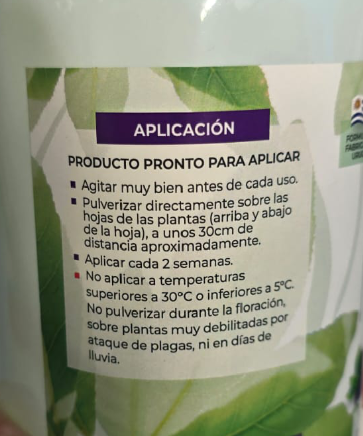 Uso recomendado: Pulverizar sobre las hojas para lograr una absorción inmediata de nutrientes y una mejora visible en el aspecto de la planta.