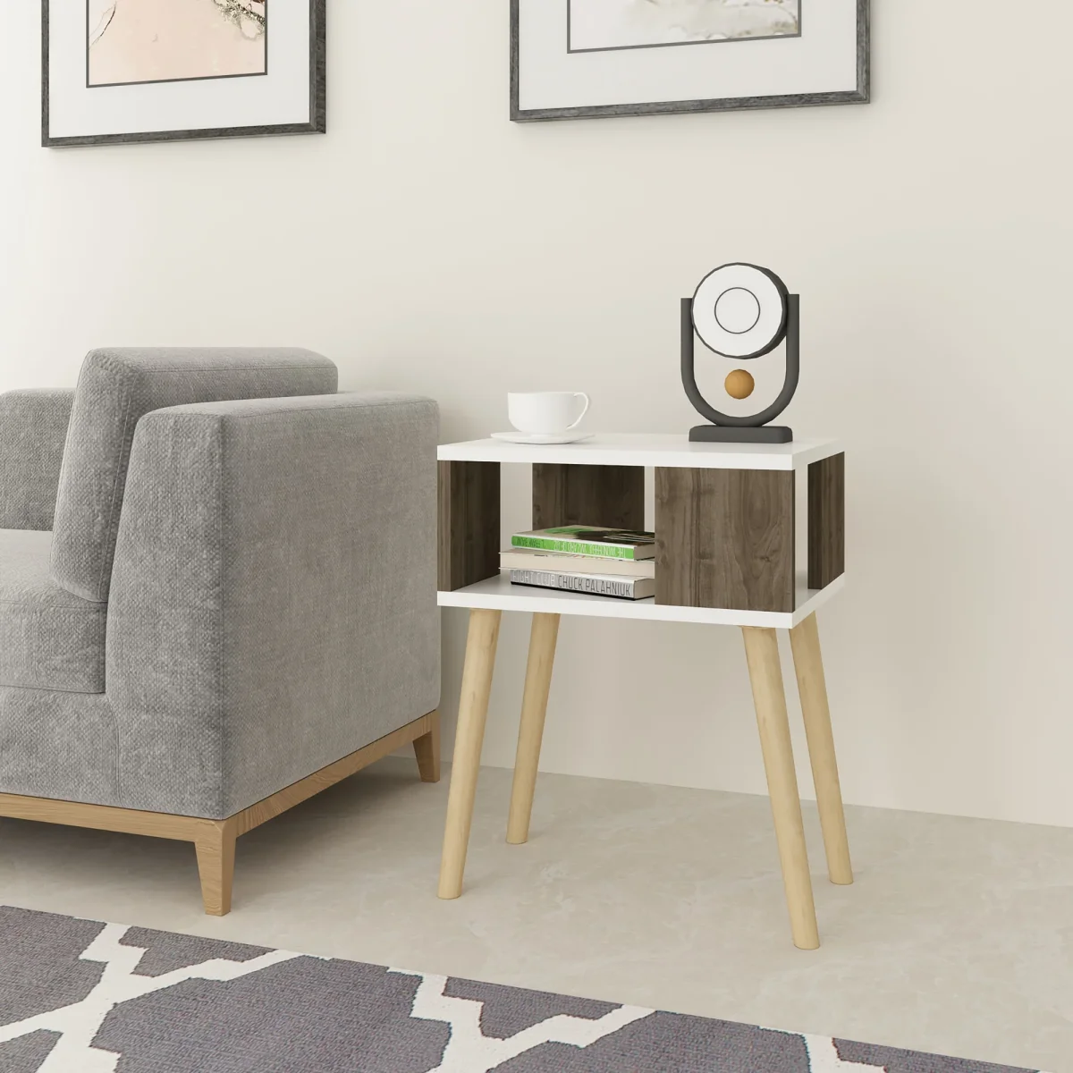 Esta original mesa auxiliar es versátil. Con su diseño atemporal, encaja perfectamente, por ejemplo, en su sala de estar. Las cuatro patas de la mesa garantizan una base estable y el práctico compartimento ofrece espacio de almacenamiento para todo tipo de objetos.