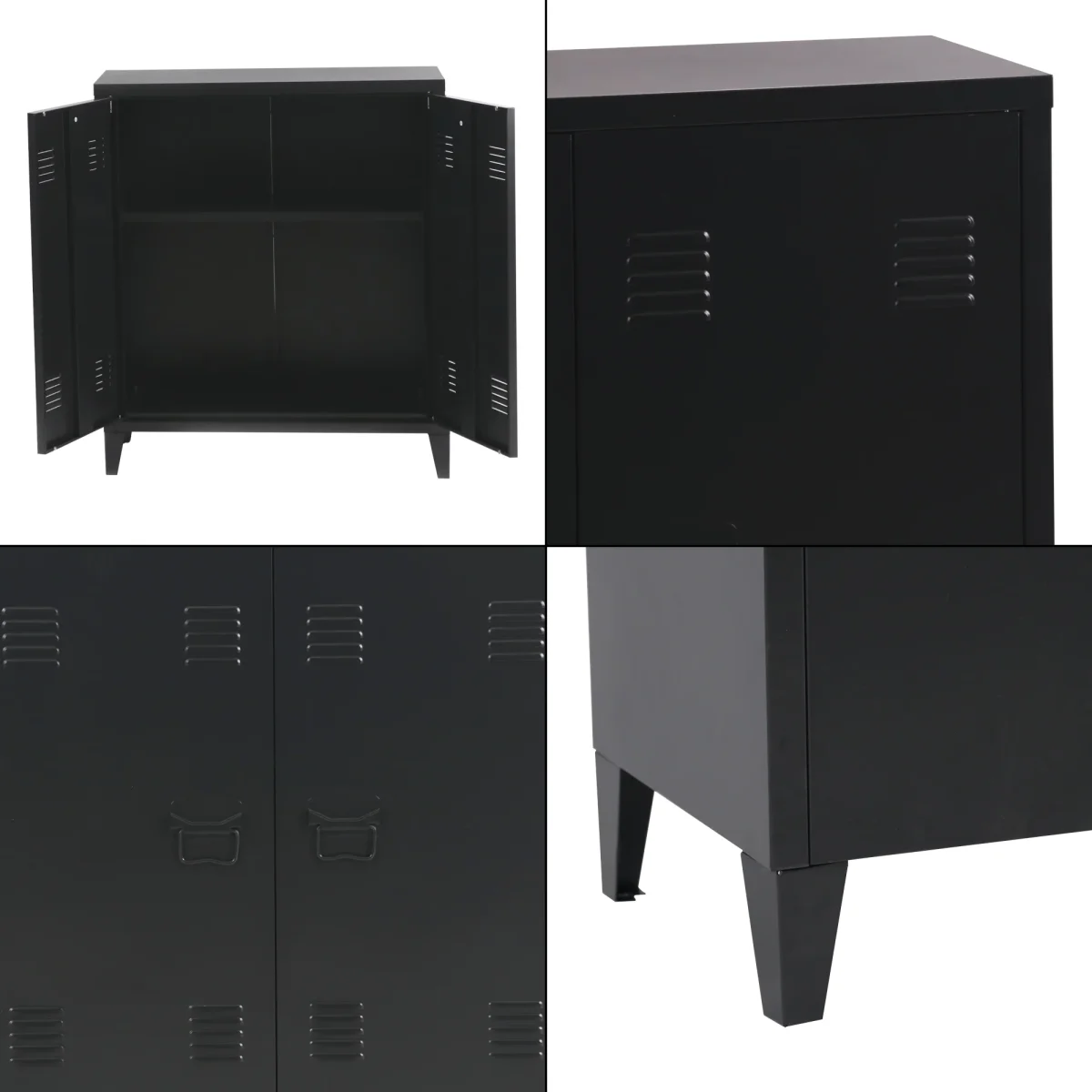 Este espacioso armario para archivos con dos puertas ofrece un espacio de almacenamiento óptimo para carpetas y material de oficina. Las ranuras de ventilación en las puertas garantizan una circulación de aire eficiente, ideal para la conservación incluso de documentos sensibles.