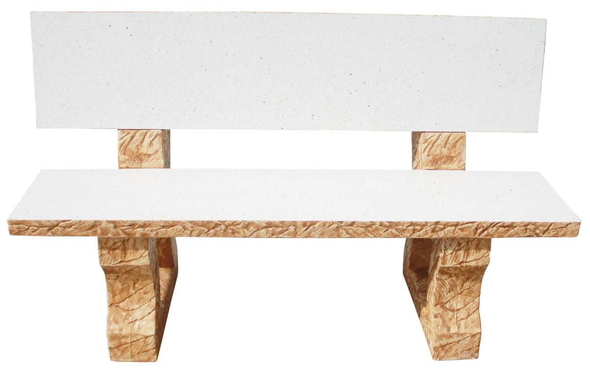 BANCO PARA JARDÍN DE PIEDRA ARTIFICIAL CON RESPALDO MODELO FIDYS PULIDO CARAMELO.