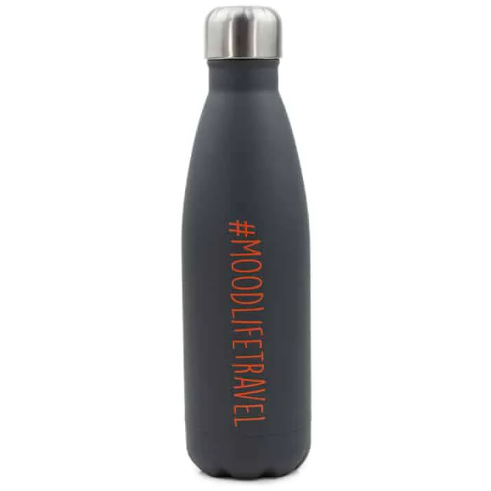 Nuestras botellas viajeras de acero inoxidable además de cuidar del planeta y acompañarte en tu frenético ritmo de vida, también mantendrán tus bebidas frías o calientes hasta 24 horas, a la vez que te inspirarán y animarán a atreverte, a comprender y a viajar más lejos y más alto…