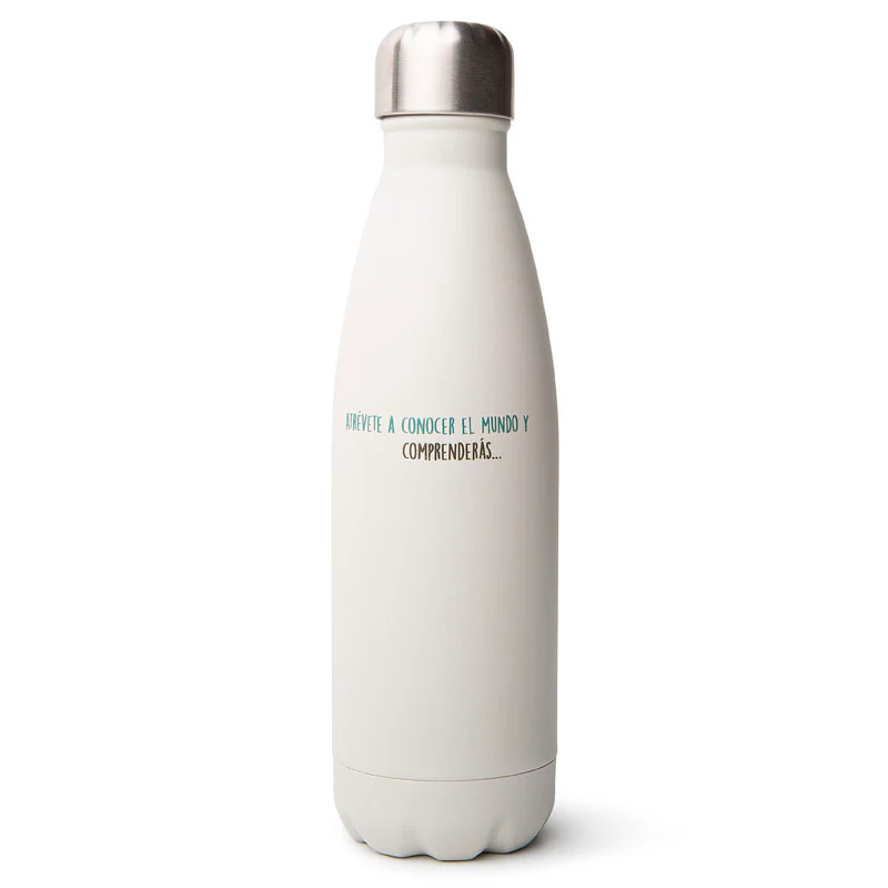 Coherente y consciente… Esta botella térmica está pensada para que te muestres más tú que nunca… Nuestras botellas viajeras de acero inoxidable además de cuidar del planeta y acompañarte en tu frenético ritmo de vida, también mantendrán tus bebidas frías o calientes hasta 24 horas, a la vez que te inspirarán y animarán a atreverte, a comprender y a viajar más lejos y más alto…