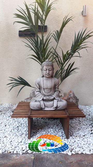 El BUDA TISSA queda fabuloso rodeado de vegetación o flores, descansando sobre rocas o arena en un espacio zen, o bien al lado de una piscina o fuente de agua. Ya sea que tengas un jardín zen minimalista, un espacio tropical exuberante o una terraza contemporánea, una figura Buda para jardín se adapta perfectamente a tu visión. Esta figura aportará a tus espacios un toque de espiritualidad y elegancia que convierte un simple jardín en un espacio único para el descanso y la introspección. Su ventaja principal es su resistencia a las inclemencias del tiempo gracias a los materiales de primera calidad con los que se ha elaborado. Su versatilidad y forma, así como sus dimensiones hacen que esta figura de buda para tu jardín se adapte en cualquier entorno o tema que pueda tener tu jardín o terraza.