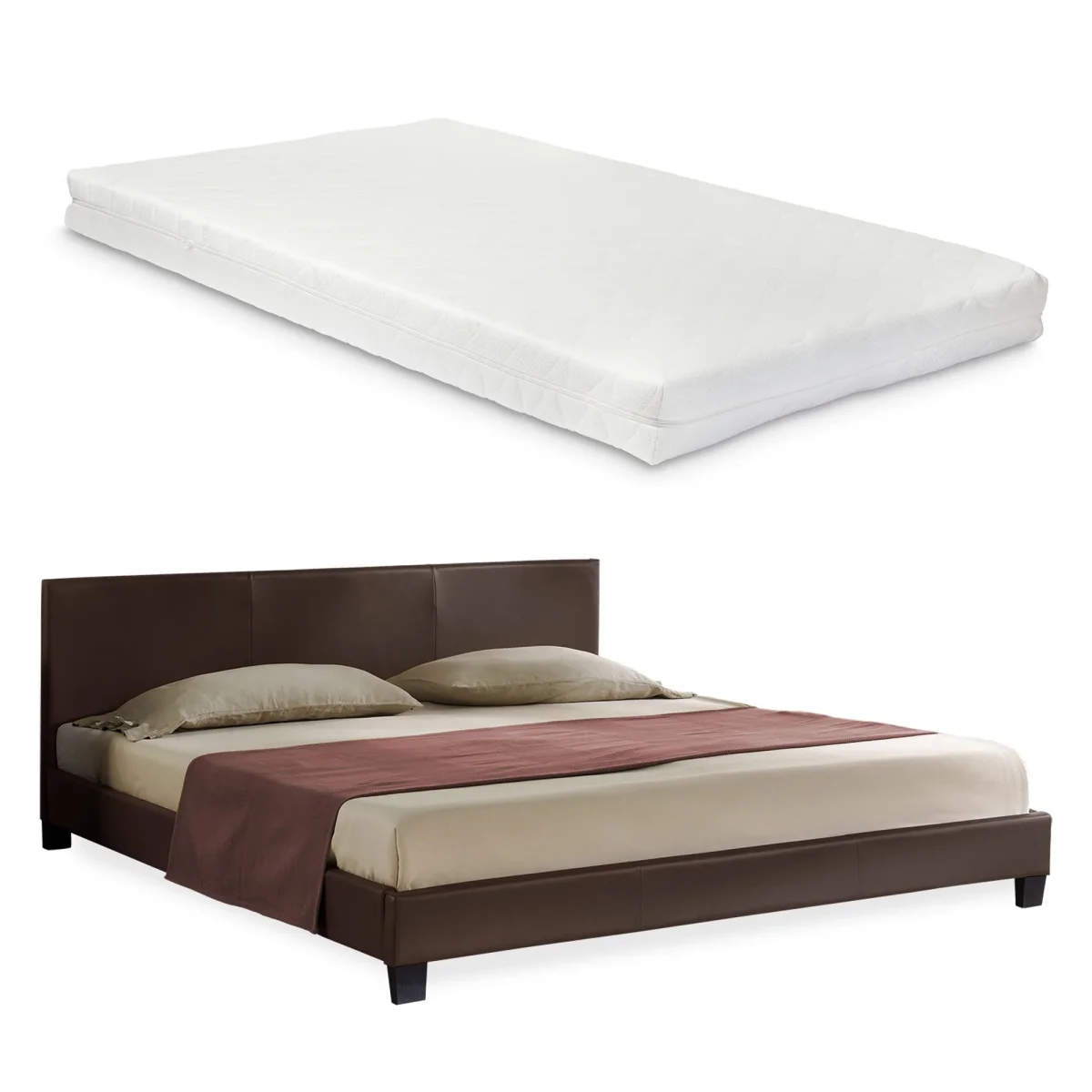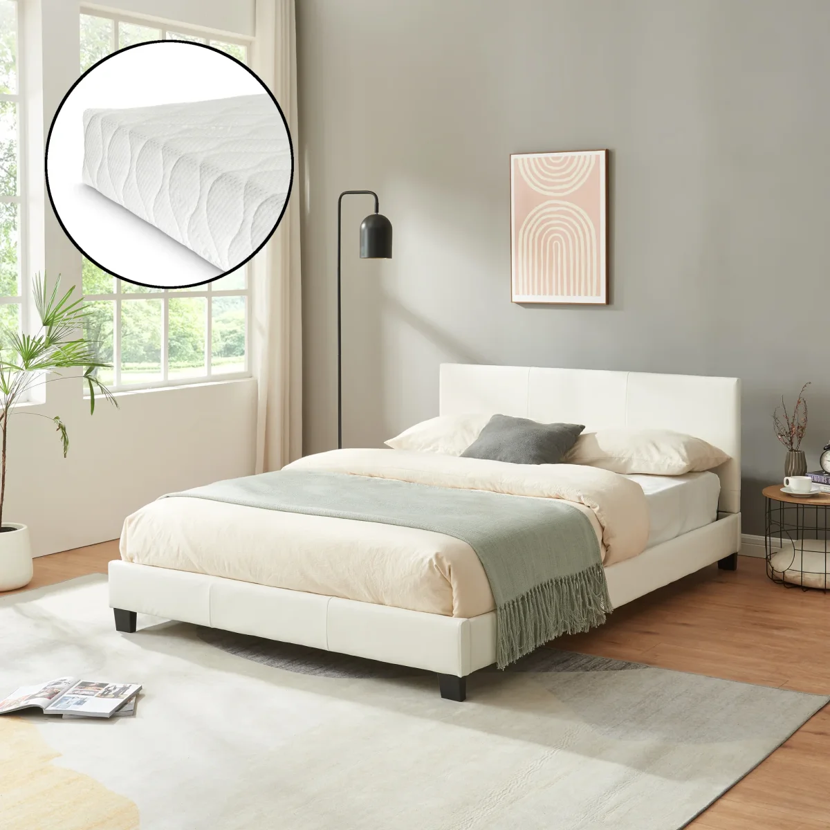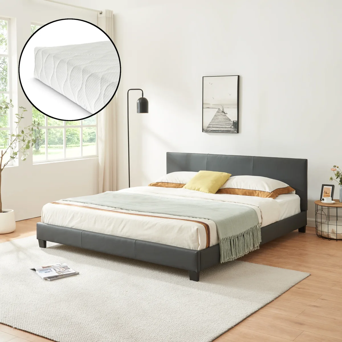 Cama de cuero sintético moderno con colchón