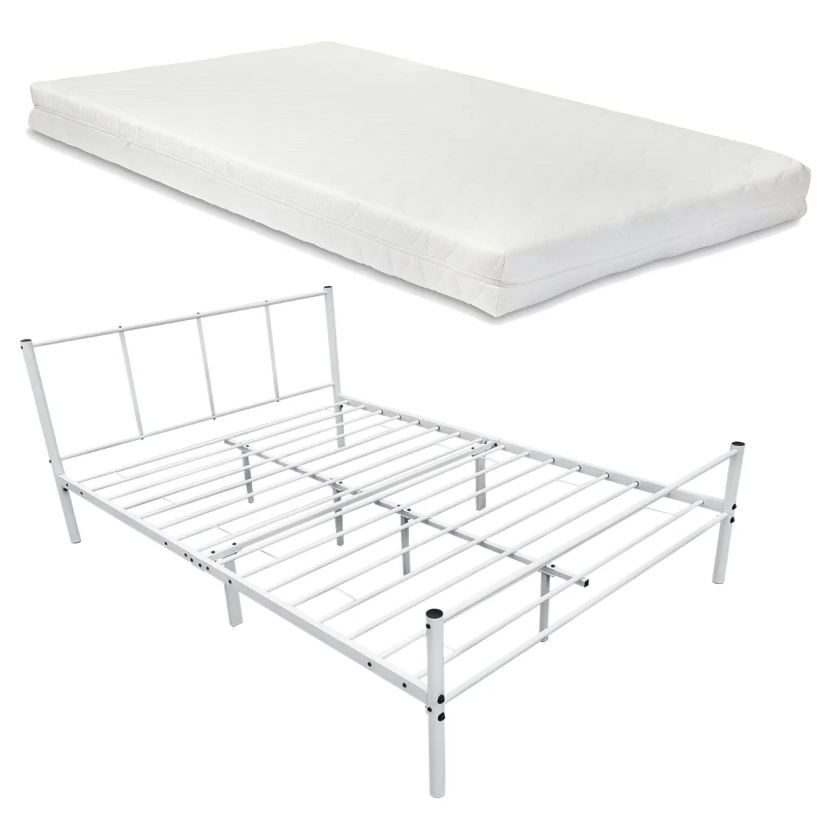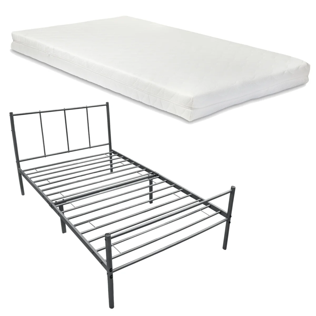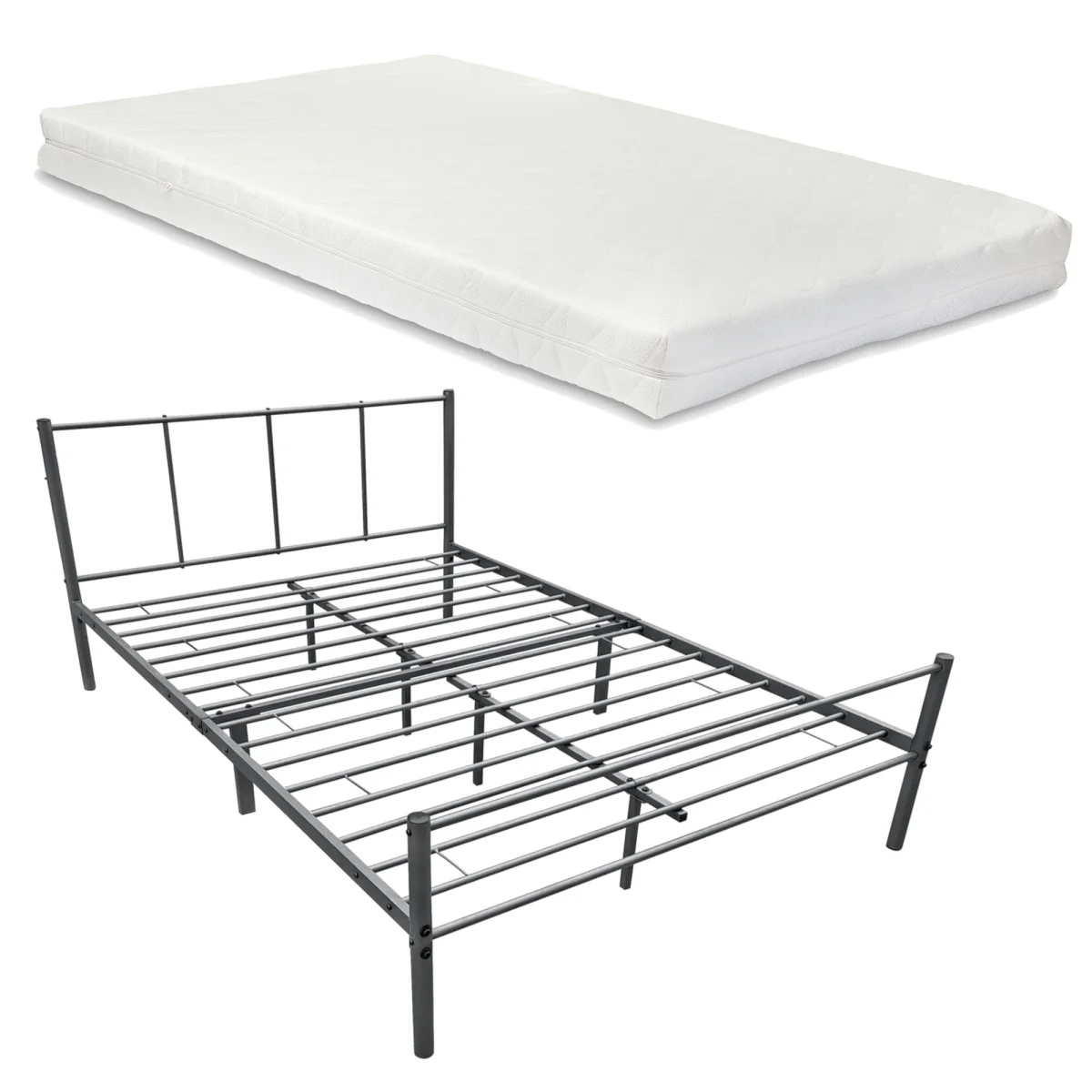 La práctica y estable cama de metal tiene una construcción sólida de metal. Las fuertes lamas ofrecen el soporte necesario y son muy cómodas. El colchón de espuma fría le proporciona un confort de sueño agradable. Es apto para alérgicos, transpirable y resistente al desgaste.