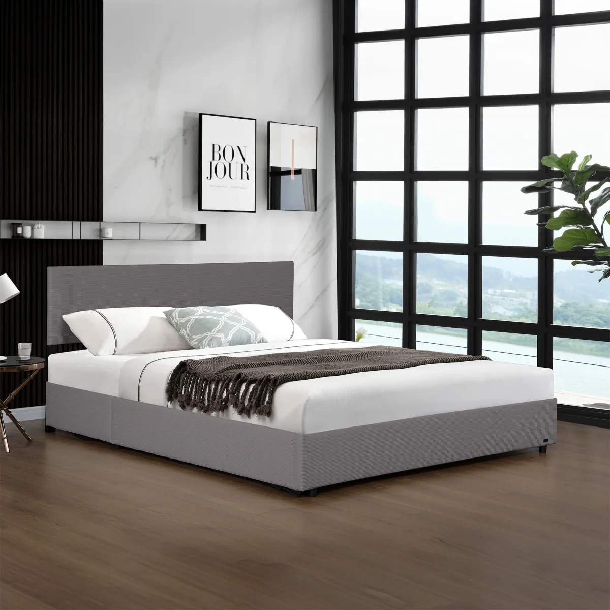 – Cama con diseño sencillo y elegante