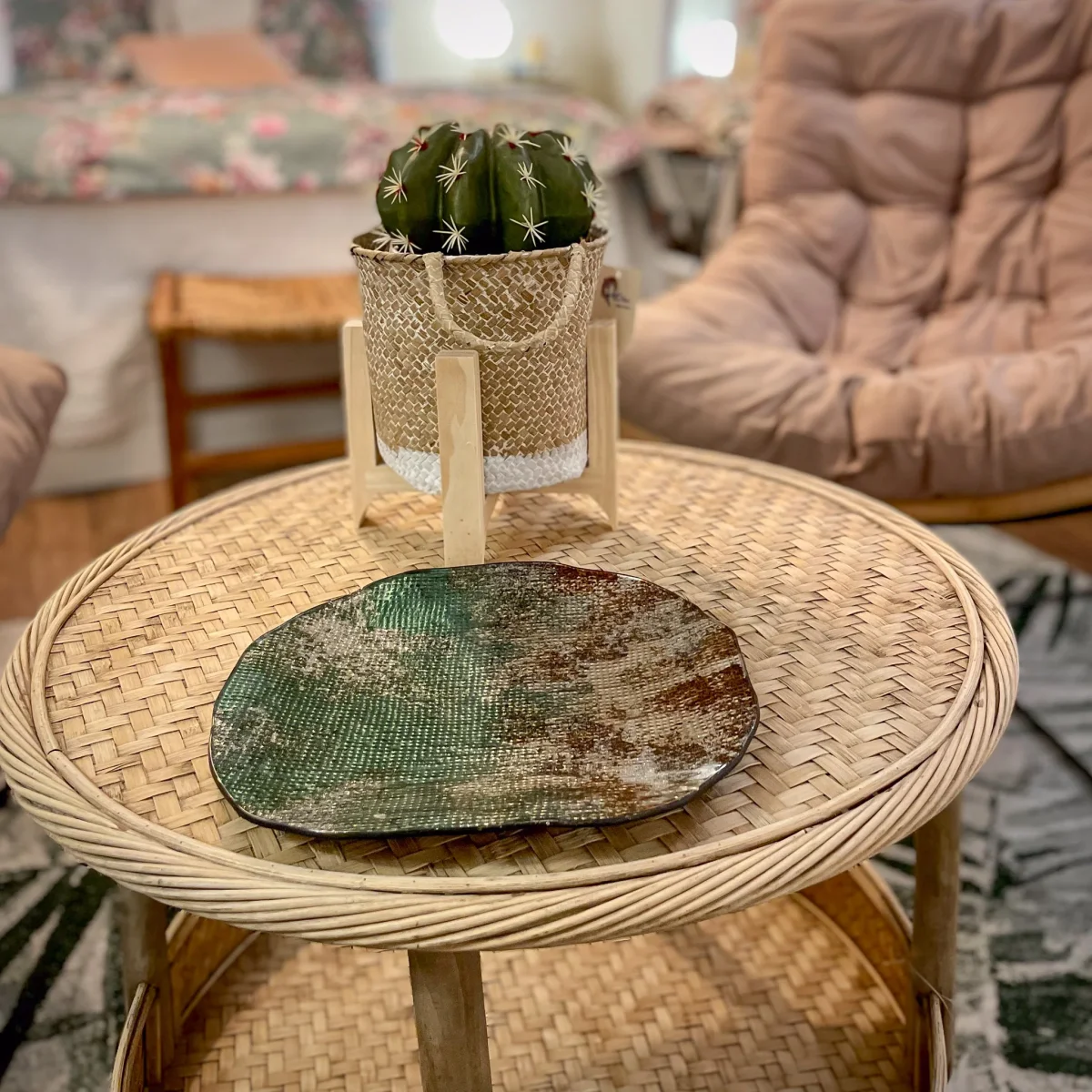 Una bandeja original con un diseño abstracto en varias tonalidades: azules, blancos y marrones. Un centro con un diseño ideal para colocar en el recibidor y dejar las llaves, o en el salón junto a unos bombones, tú eliges. Combínala con el tamaño 39x23x4 y crea composiciones originales.