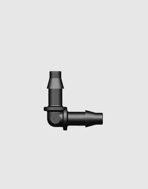 Codo espita de 4,5 mm. para microtubo, de la marca Teco®, utilizado principalmente para realizar esquinas cerradas de 90º o para conectar directamente al tubo principal.
