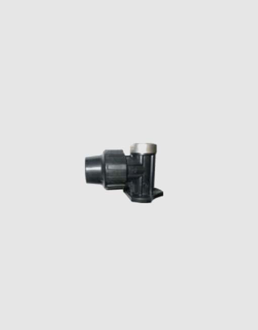 Codo grifo de polietileno de color negro especialmente diseñado para conectar tuberías de polietileno a accesorios con rosca o grifos a 90º. En un extremo dispone de una rosca hembra y conexión a tubería en el otro.