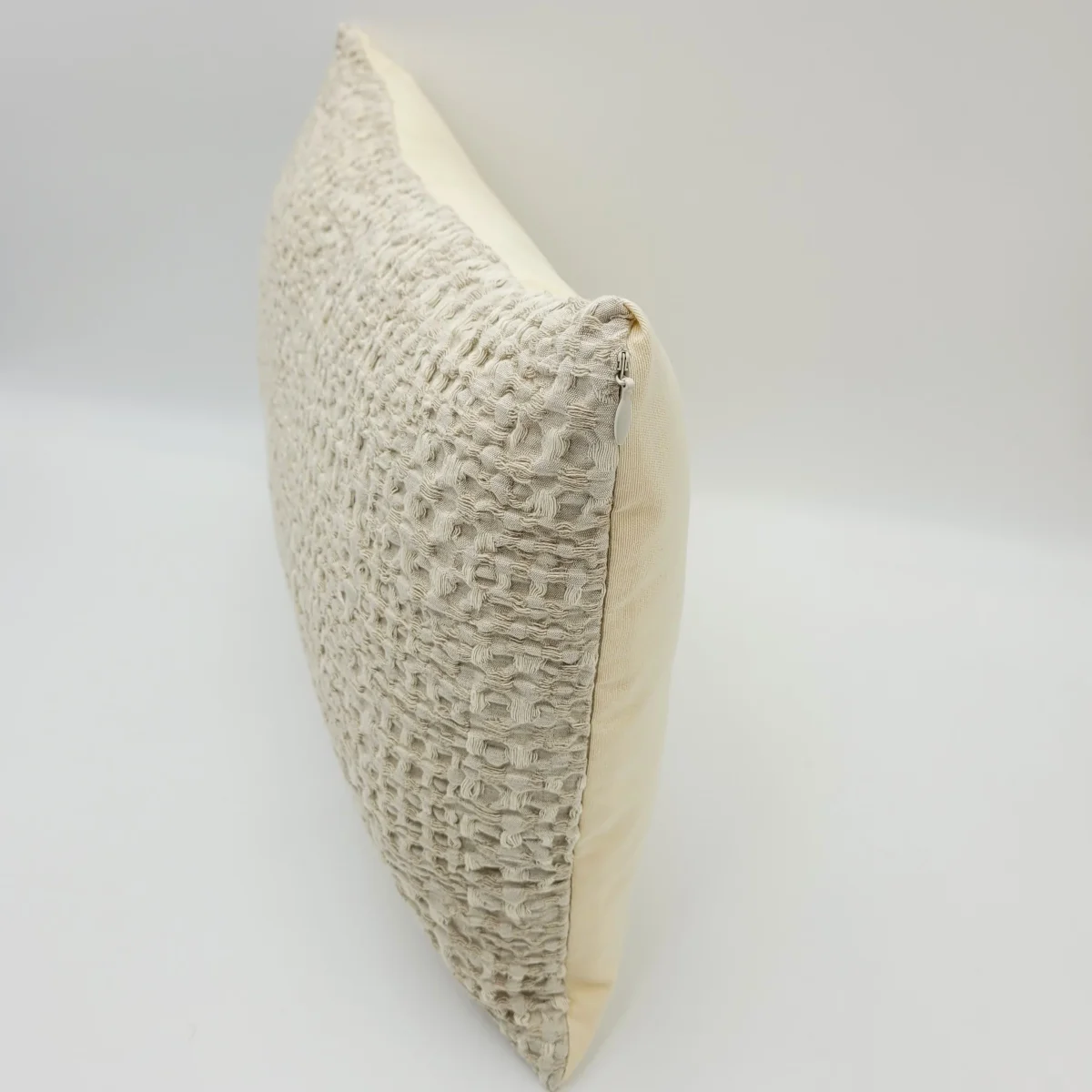Este cojín de algodón está confeccionado en nido de abeja, técnica decorativa que le da un toque muy elegante. Un cojín beige de diseño versátil que combinará a la perfección con el resto de textiles. Incluye el relleno y tiene un cierre lateral de cremallera. Combínalo con el tamaño 50×50 para hacer ambientes únicos.