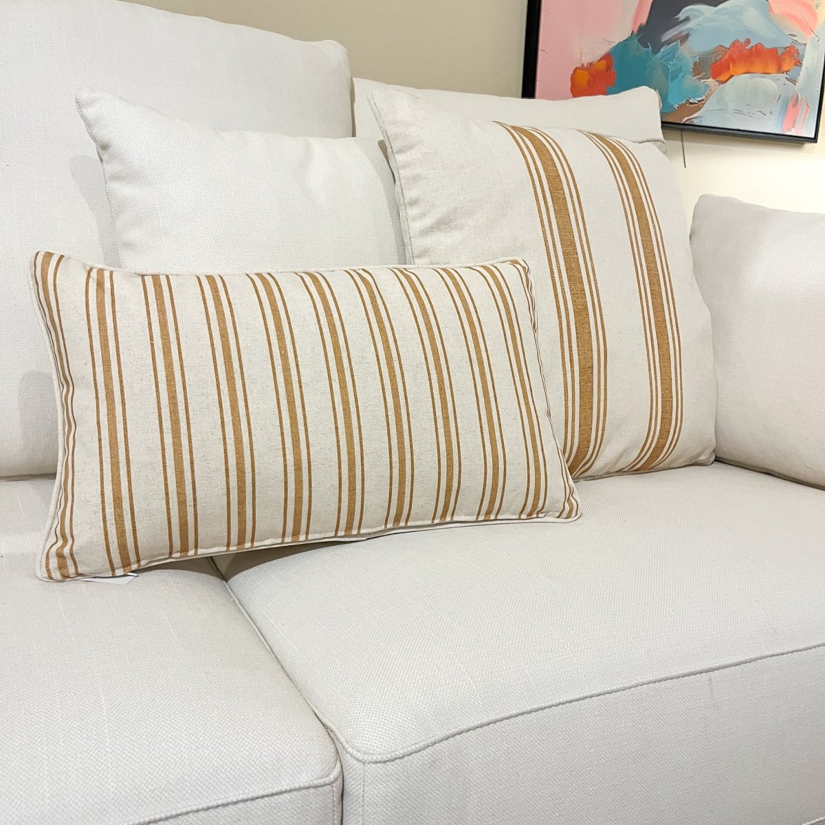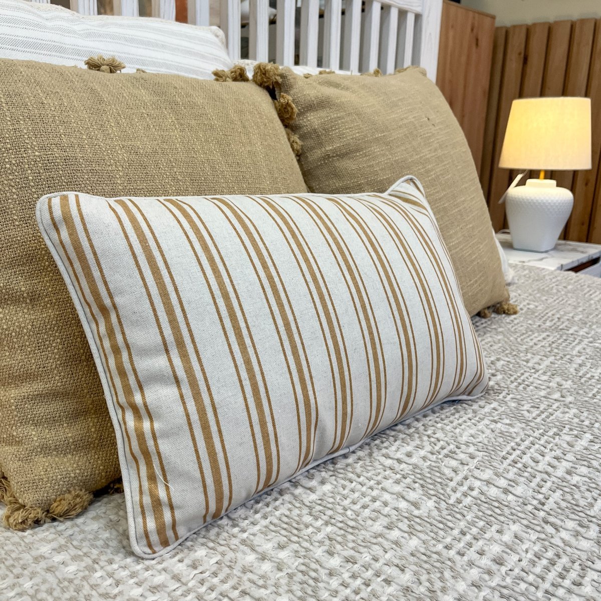 Dale un toque especial a tu hogar con nuestro cojín Harper de lino. Su diseño de rayas en tonos mostaza y beige aportará un toque cálido y exclusivo a cualquier espacio. Un cojín de rayas de lino de 30×50 cm cómodo, versátil y con unas dimensiones perfectas para salón o dormitorio. Combínalo con el modelo Harper 50×50 para hacer una composición llena de estilo ¡El relleno viene incluido, para que solo tengas que preocuparte de buscarle un sitio en tu hogar!