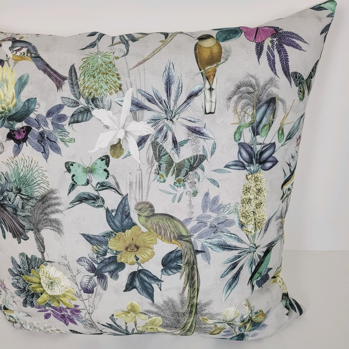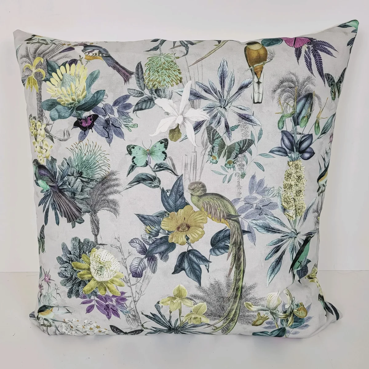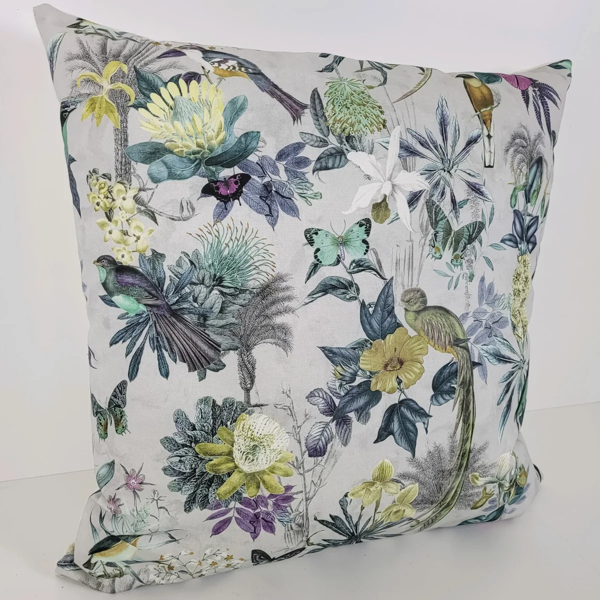 Resalta tu dormitorio o sofá gracias a nuestro cojín estampado naturaleza de 50×50. Un cojín estampado de algodón 100% hecho a mano y diseño exclusivo de PetraDecora. A juego con el plaid edredón pájaros mariposas y los cojines de 50×30 y 60×60. El cojín viene con relleno incluido.
