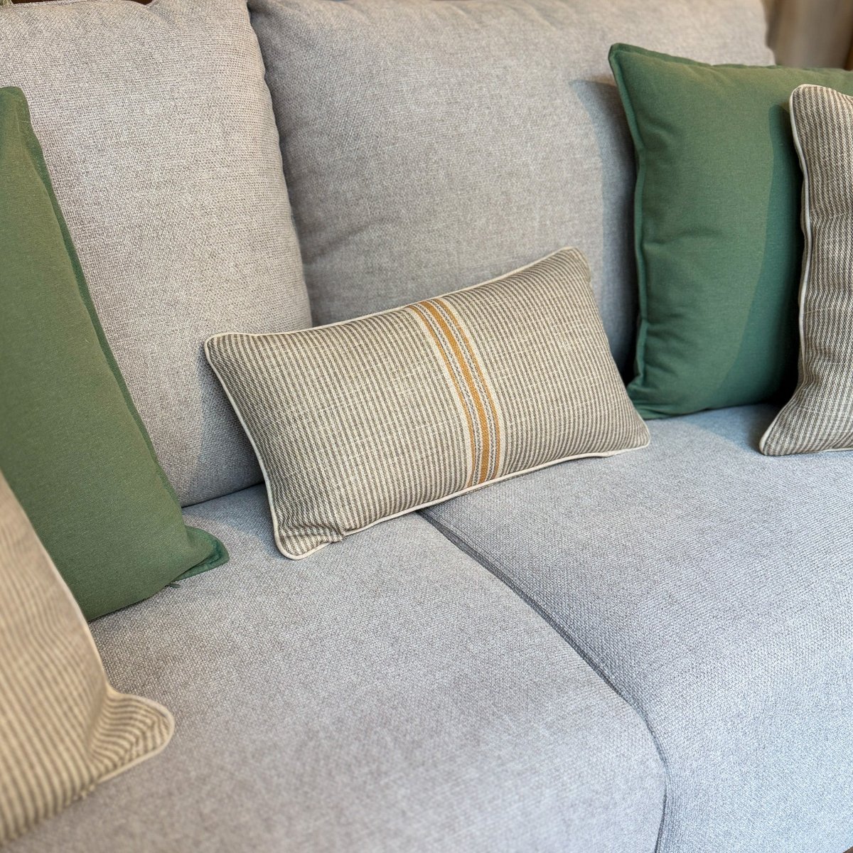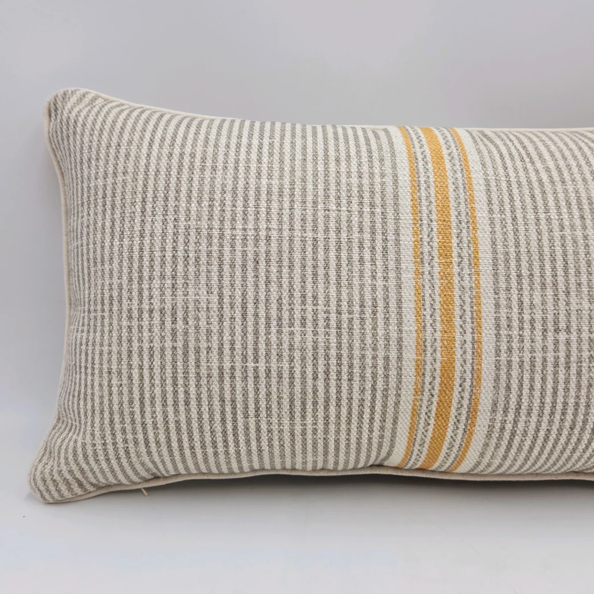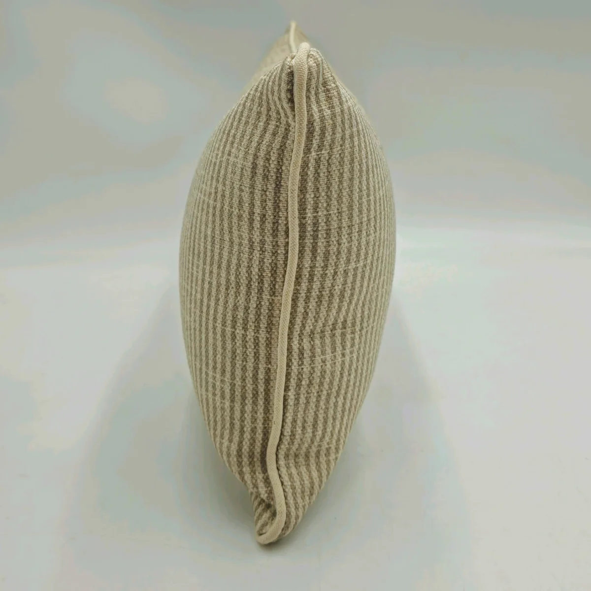 Este cojín de lino con rayas mostaza de 30×50 cm es la opción perfecta para añadir calidez y textura a tu hogar. Su diseño destaca por un patrón de finas líneas verticales en tonos neutros y una franja central en color tierra, una paleta que transforma la atmósfera de tu sofá o dormitorio. Este contraste sutil lo hace muy versátil, funcionando tanto en ambientes nórdicos como en decoraciones rústicas o mediterráneas.