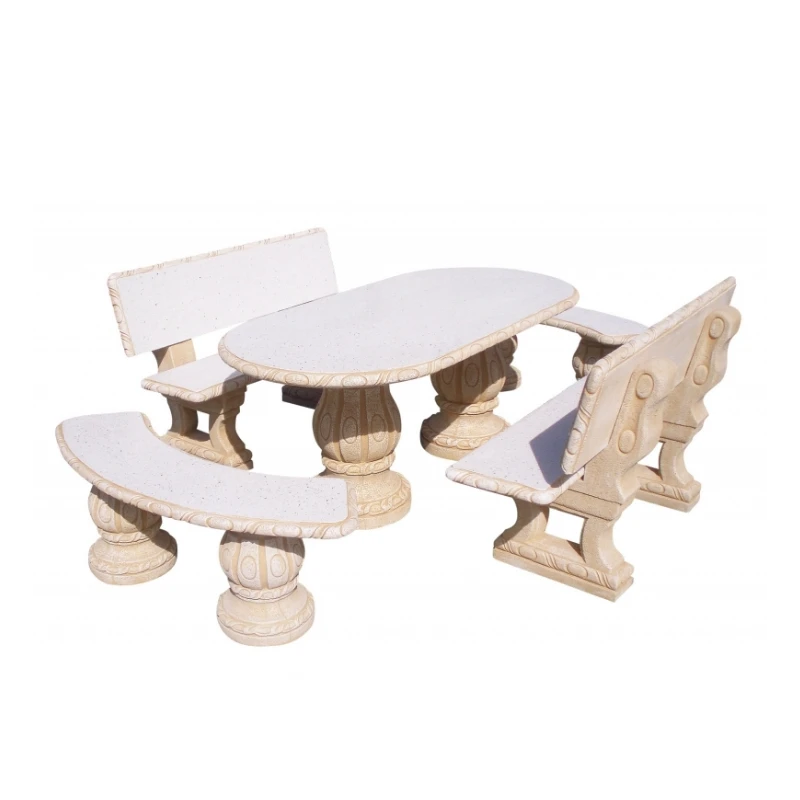 1 mesa + 2 bancos rectos con respaldo + 2 bancos curvados.
