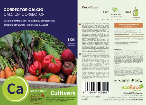 Constituye un aporte básico de calcio que conviene incluir en todo programa de nutrición de cultivos ecológicos de alto rendimiento. Sobre todo, en las fases de cuajado y fructicación, tan importantes para asegurar la productividad.