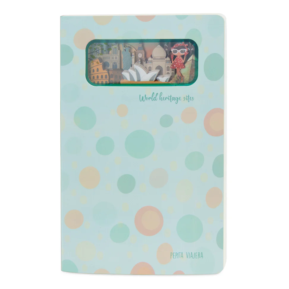 El cuaderno con ventana Patrimonio de la Humanidad de Pepita Viajera es ideal para estudiantes, viajeros, creativos o amantes de la escritura.