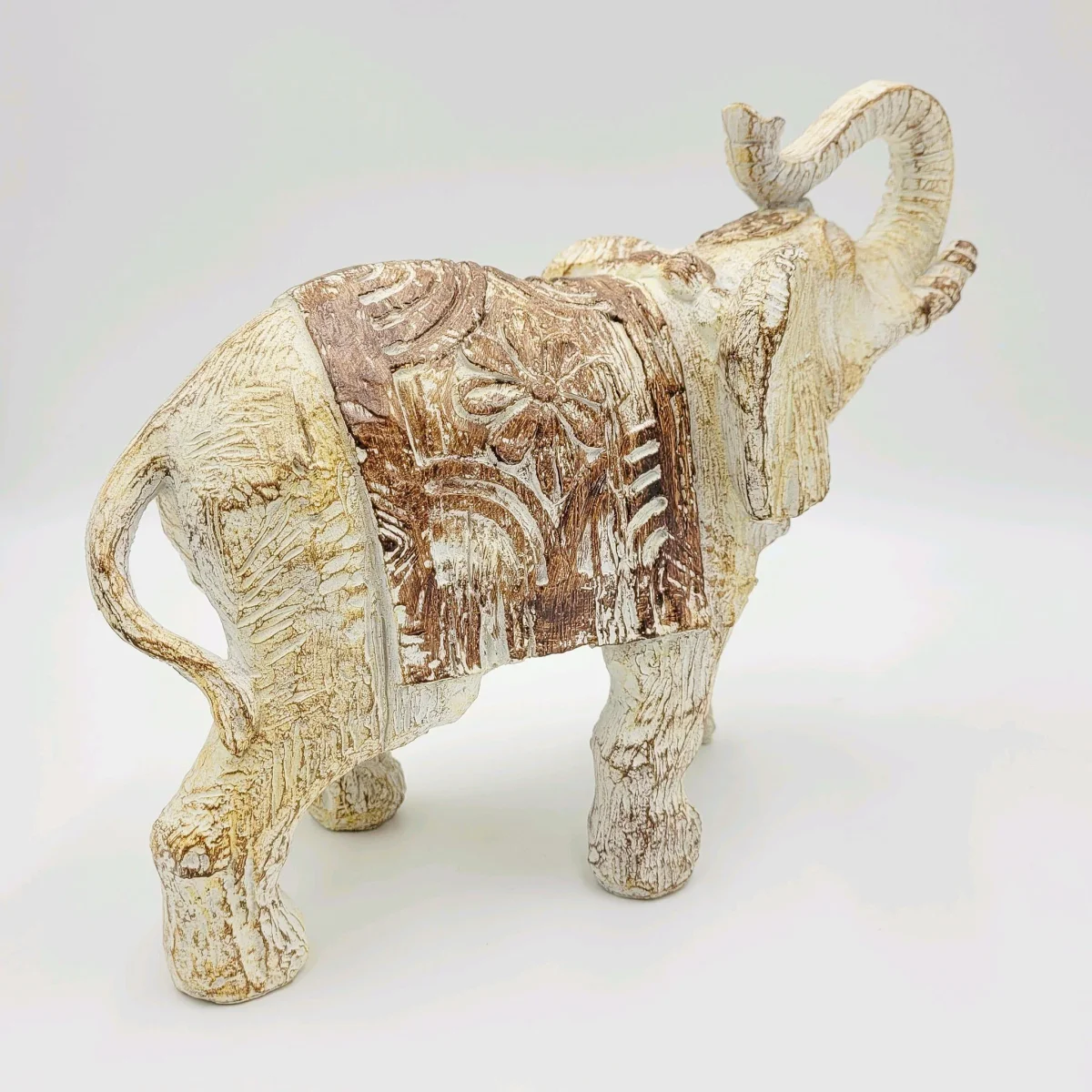 Llena tu hogar de personalidad con este elefante de resina en tonos marrones. Su diseño versátil y su tamaño lo hacen perfecto para cualquier estancia: salones, recibidores, pasillos o dormitorios, tú eliges. Combínalo con el tamaño 36x15x23 y crea composiciones únicas.