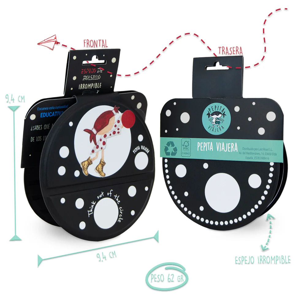 Por su tamaño compacto y su resistencia, es ideal para tener siempre a mano. Ya sea en el cole, en el trabajo o en un viaje, este espejo te acompaña sin romperse ni pasar desapercibido.