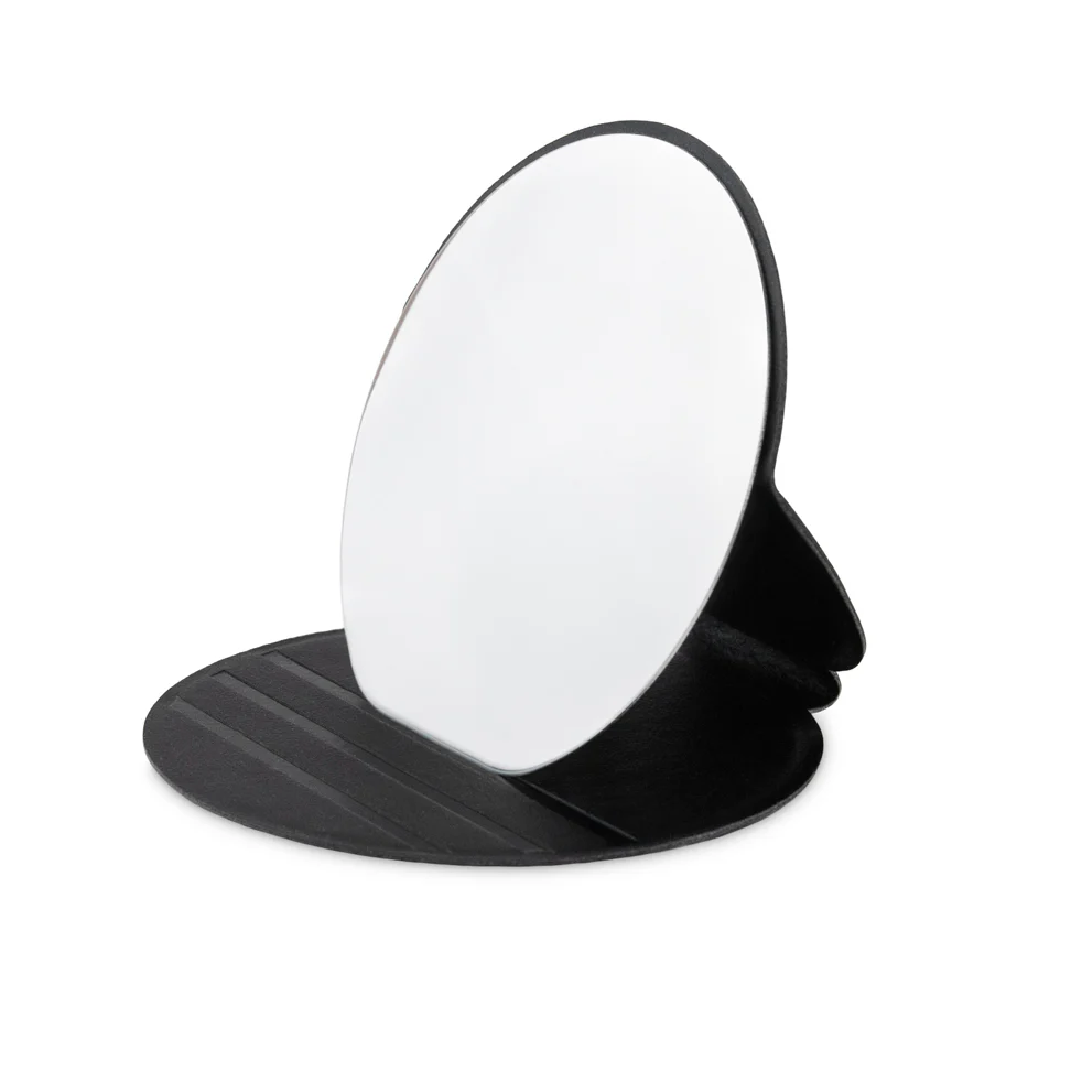 Fabricado en acero inoxidable y recubierto con PU de alta calidad, este espejo es irrompible, perfecto para llevar en el bolso, la mochila o la maleta sin preocupaciones. Su forma redonda y su tacto agradable lo convierten en el complemento ideal para el día a día o para viajes.