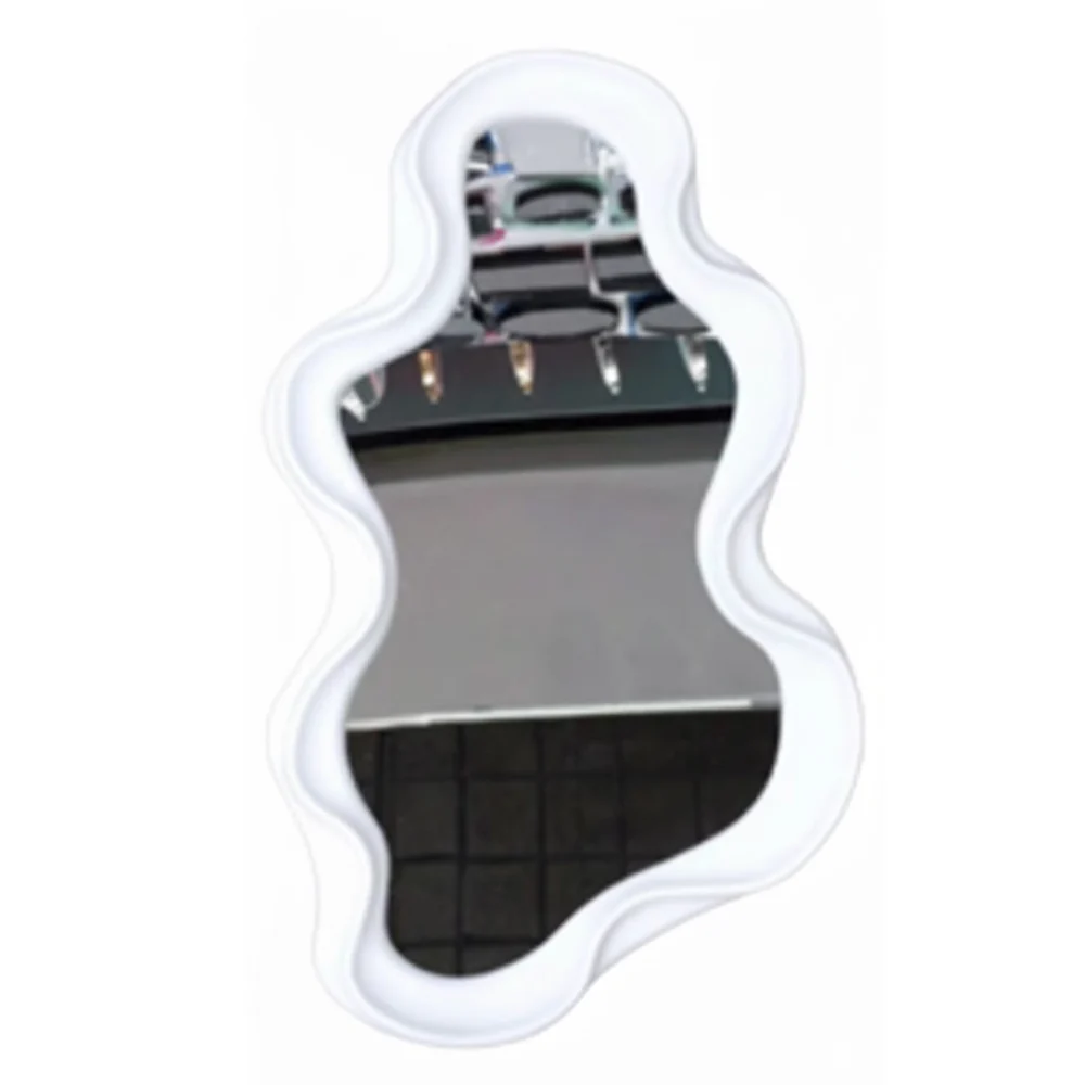 Espejo decorativo de pared con marco blanco y bordes ondulados que crean un efecto visual dinámico y contemporáneo. Su diseño versátil se adapta a cualquier ambiente, desde espacios modernos hasta tradicionales. Amplía la luminosidad natural de tus habitaciones y genera una sensación de amplitud. Ideal para dormitorios, baños, pasillos o salas de estar. Instalación sencilla en la pared. Un accesorio funcional que eleva la decoración de tu hogar con estilo y sofisticación.