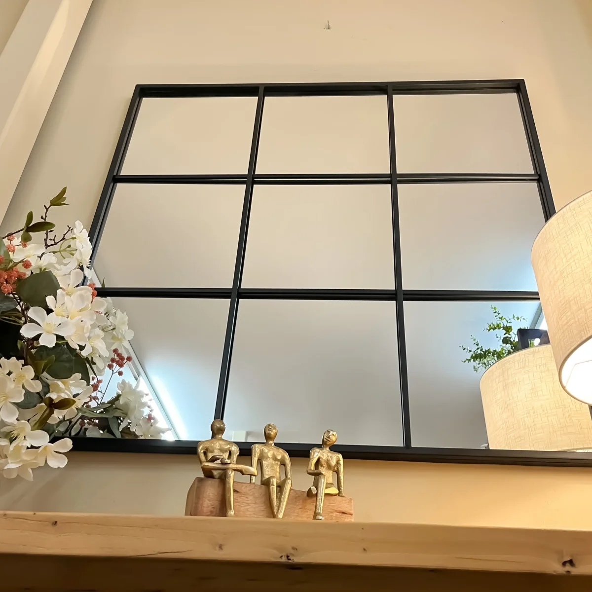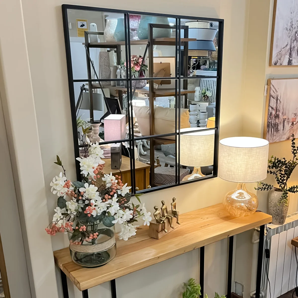 Un espejo en forma de ventana con el que vestir tus paredes de estilo y tendencia. Un espejo cuadrado de metal negro con cuarterones es una opción ideal y llena de estilo con la que decorar tu salón, pasillo, entrada o dormitorio. Nuestro espejo de cuarterones de 90×90 encajará a la perfección en cualquier ambiente y estilo decorativo. Disponible en tamaño de 60×90
