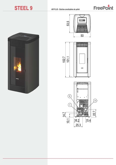 El amplio depósito de pellet garantiza larga autonomía continua de funcionamiento sin interrupciones. El kit de instalación está incluido. Su diseño modular facilita el mantenimiento periódico sin necesidad de técnico especializado.