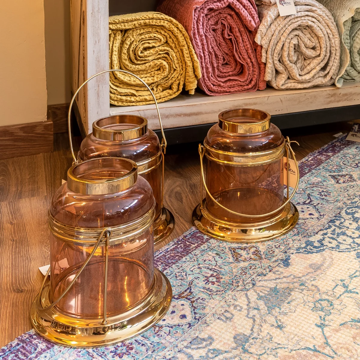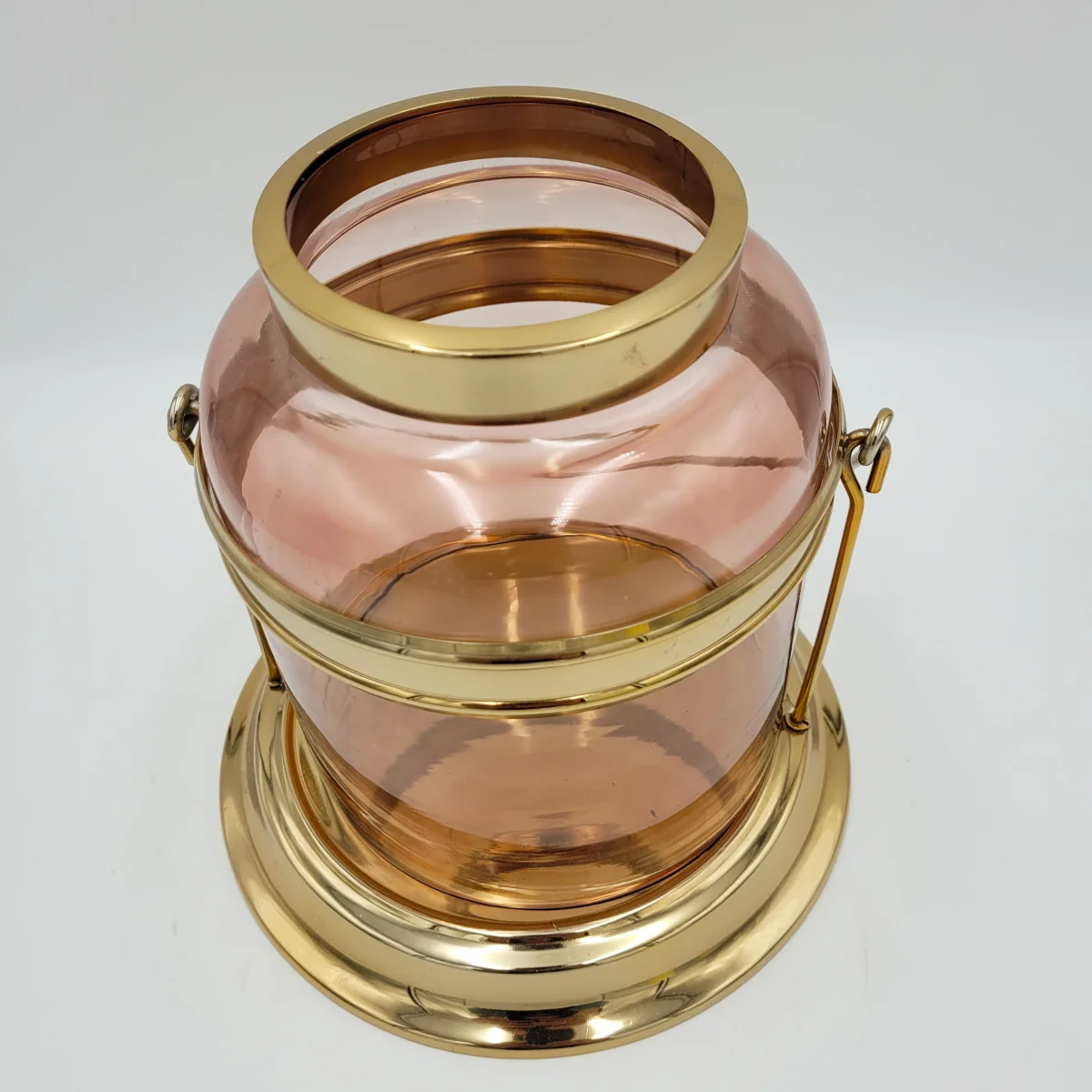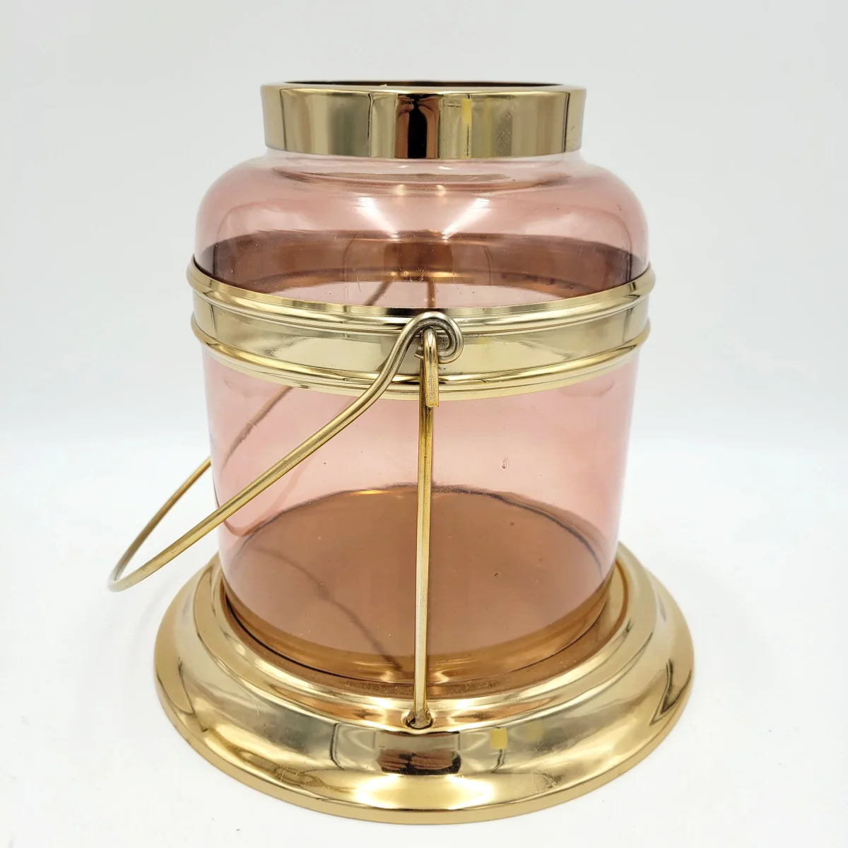 Un farolillo original con el que iluminar los rincones de tu hogar. Un diseño en metal y cristal, en tonos rosas y dorados que añade aún más calidez a tu ambiente. Versátil y práctico, llévalo donde lo necesites incluso para exteriores.