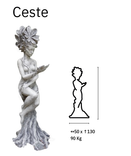 Fabricada con piedra artificial a base de cemento blanco, marmolina y grava, Ceste no solo enamora por su diseño, sino también por su increíble resistencia. Esta figura está pensada para un uso exclusivo en exteriores, gracias a su capacidad para enfrentar las inclemencias meteorológicas. Desde heladas extremas hasta rayos UV, viento o lluvia, Ceste mantiene su belleza intacta, sin importar lo que la naturaleza le depare. Si buscas una pieza duradera que no comprometa el estilo, esta es la elección perfecta.