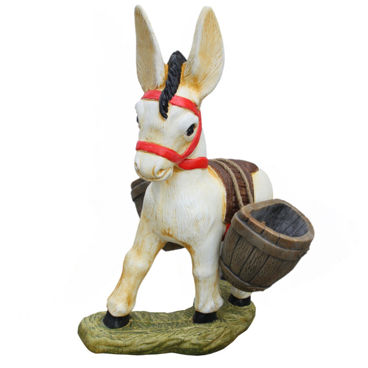 Figura de Burrito Lucero: Decoración de Jardín en Piedra Artificial con Alforjas