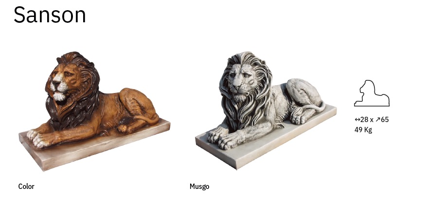No dejes pasar la oportunidad de tener al León Sansón como el guardián de tu jardín o la figura central de tus espacios exteriores. Su diseño imponente y su durabilidad lo convierten en una obra de arte para toda la vida. Haz que Sansón sea el centro de atención de tu hogar y transforma tus espacios con la fuerza y elegancia que solo él puede ofrecer.