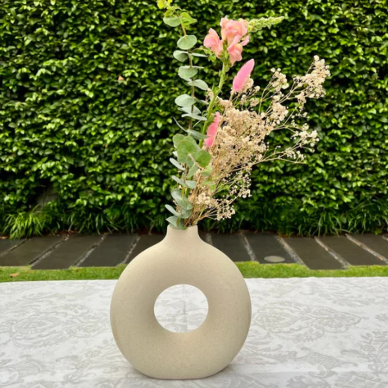 Elegante, moderno y con forma circular que lo convierte en una pieza de arte funcional. Este florero de cerámica no solo sirve para colocar flores: es una declaración de estilo. Perfecto para decoraciones minimalistas, escandinavas o contemporáneas.