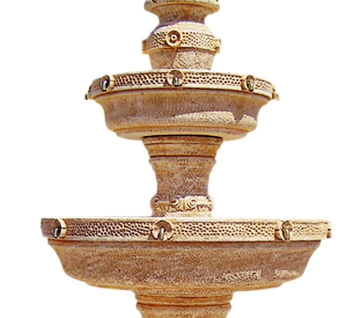 Esta fuente tiene en su base un cerco a modo de estanque que puedes utilizar para realizar un lago en la base de la fuente.