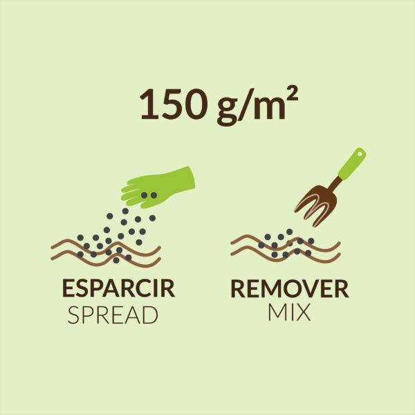Esparcir y remover: 150 g/m². Aplicación recomendada: 1 vez al año.