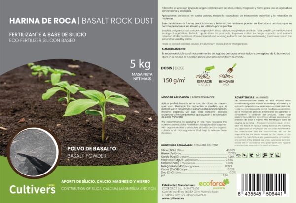 - Polvo de basalto. Fertilizantes a base de silicio. Aporte de microelementos para todo tipo de plantas.
