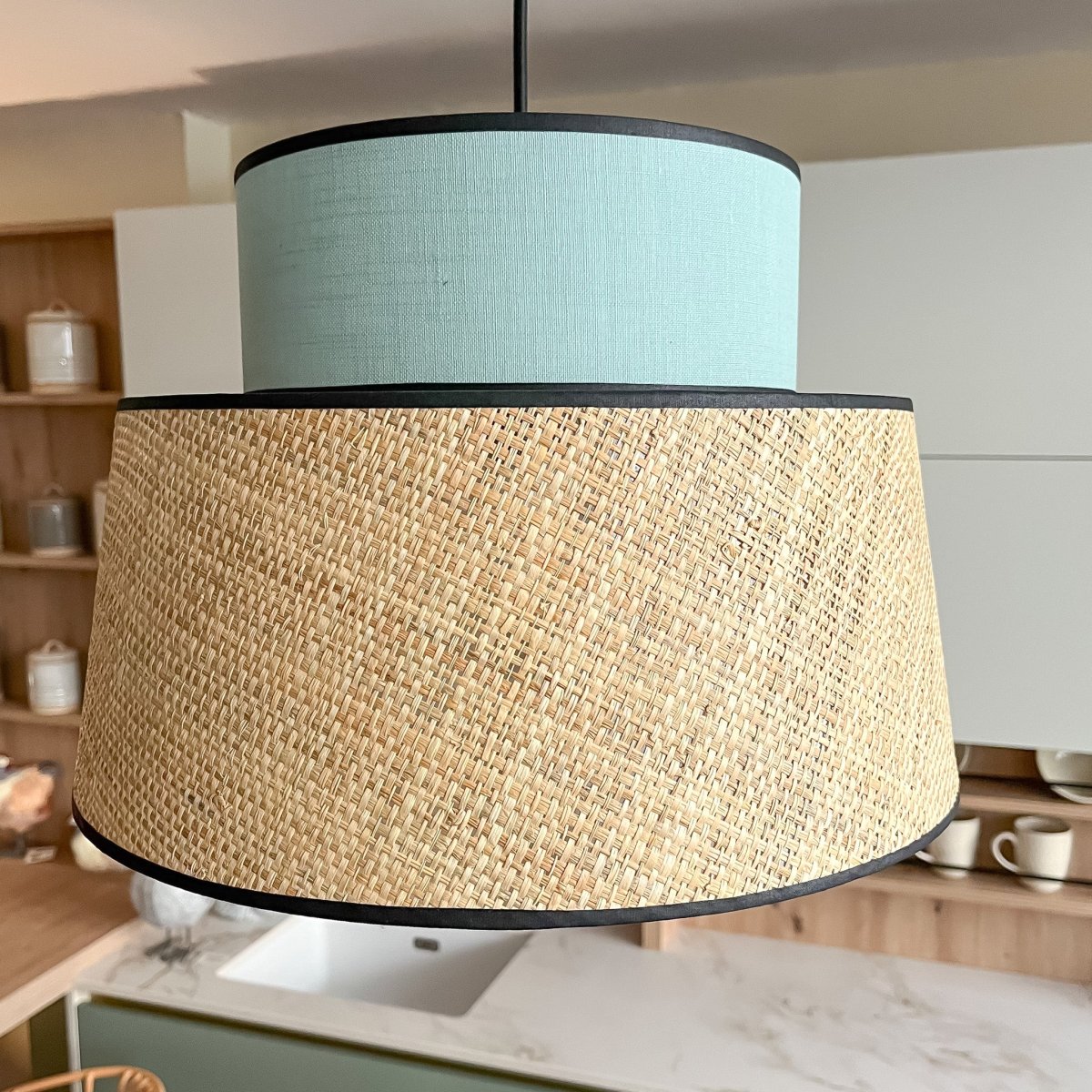 El modelo Bora es una lámpara de techo moderna y original que encajará a la perfección en ambientes boho, modernos y desenfadados. Una lámpara de rafia natural y lino color azul que añadirán un toque de calidez extra y bordes negros a juego con el cable. La mezcla de texturas entre lino y rafia crea un contraste que te encantará. Además, podrás ajustar la altura de colocación para adaptarla a la estancia y personalizar la decoración según tu estilo. La bombilla no está incluida.