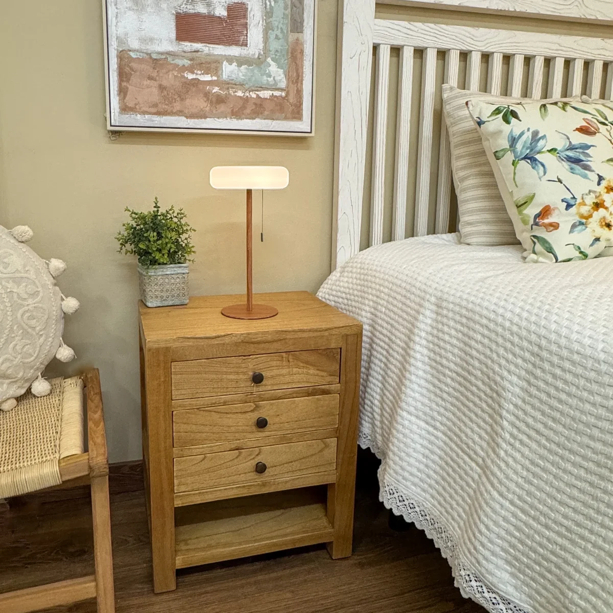 Integrar esta lámpara de mesa en tu mobiliario es una forma sencilla de mejorar la atmósfera de tu hogar con una luz indirecta que no deslumbra. Su acabado neutro permite que combine perfectamente con muebles de madera natural o superficies lacadas. Una iluminación esencial para quienes valoran los detalles técnicos cuidados y desean un punto de luz versátil que sume confort visual a su dormitorio o zona de estar de manera inmediata.