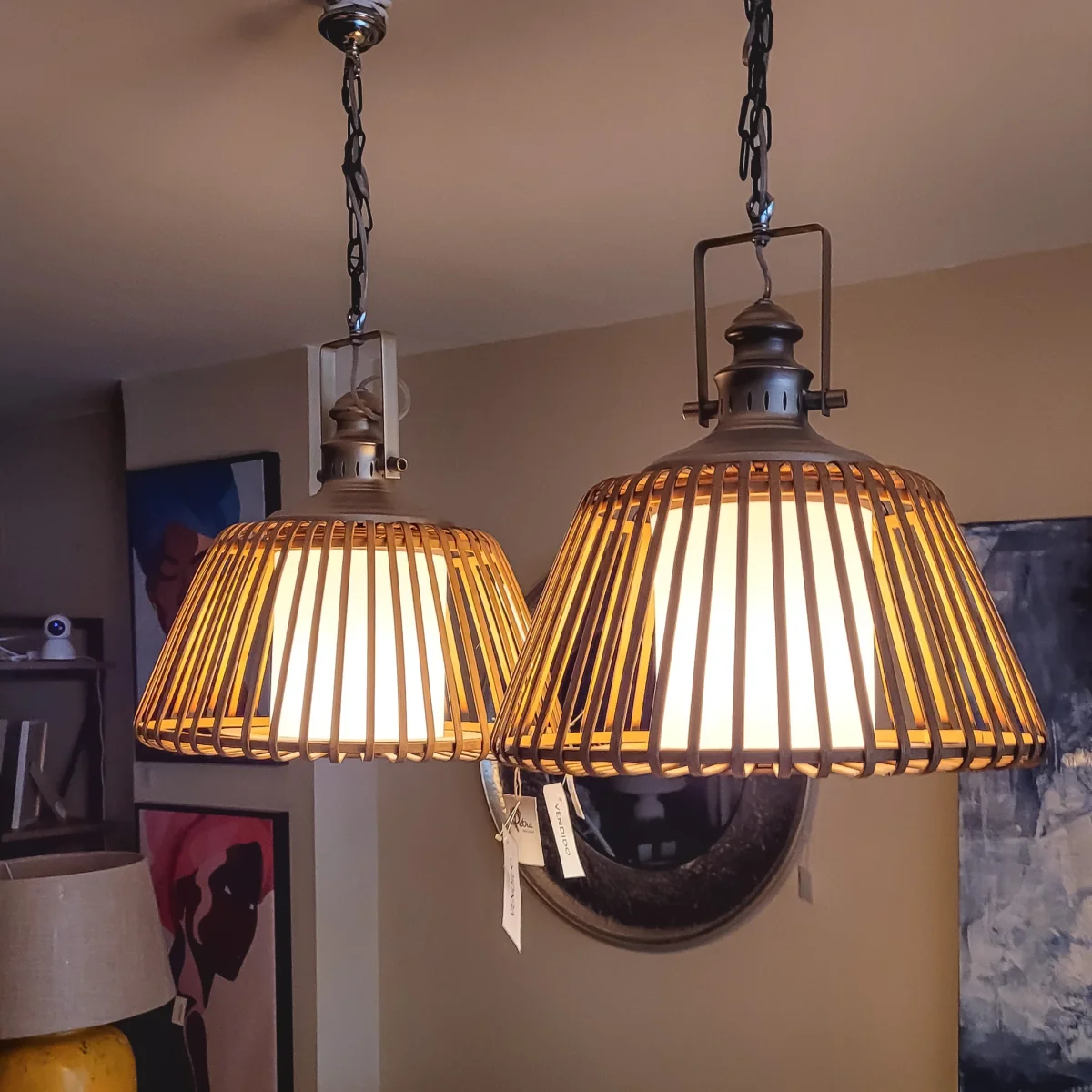 Una lámpara de techo de bambú con difusor. Fabricada en bambú y con soporte de metal color plateado. Una lámpara moderna y actual, ideal para estilos boho, modernos y desenfadados. Una lámpara de techo de 43x43x40 perfecta para salones, comedores o dormitorios.