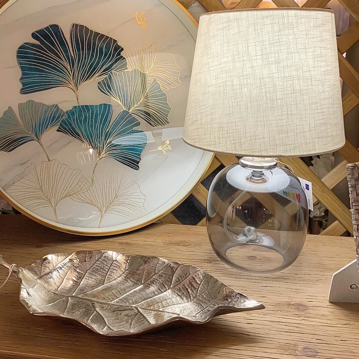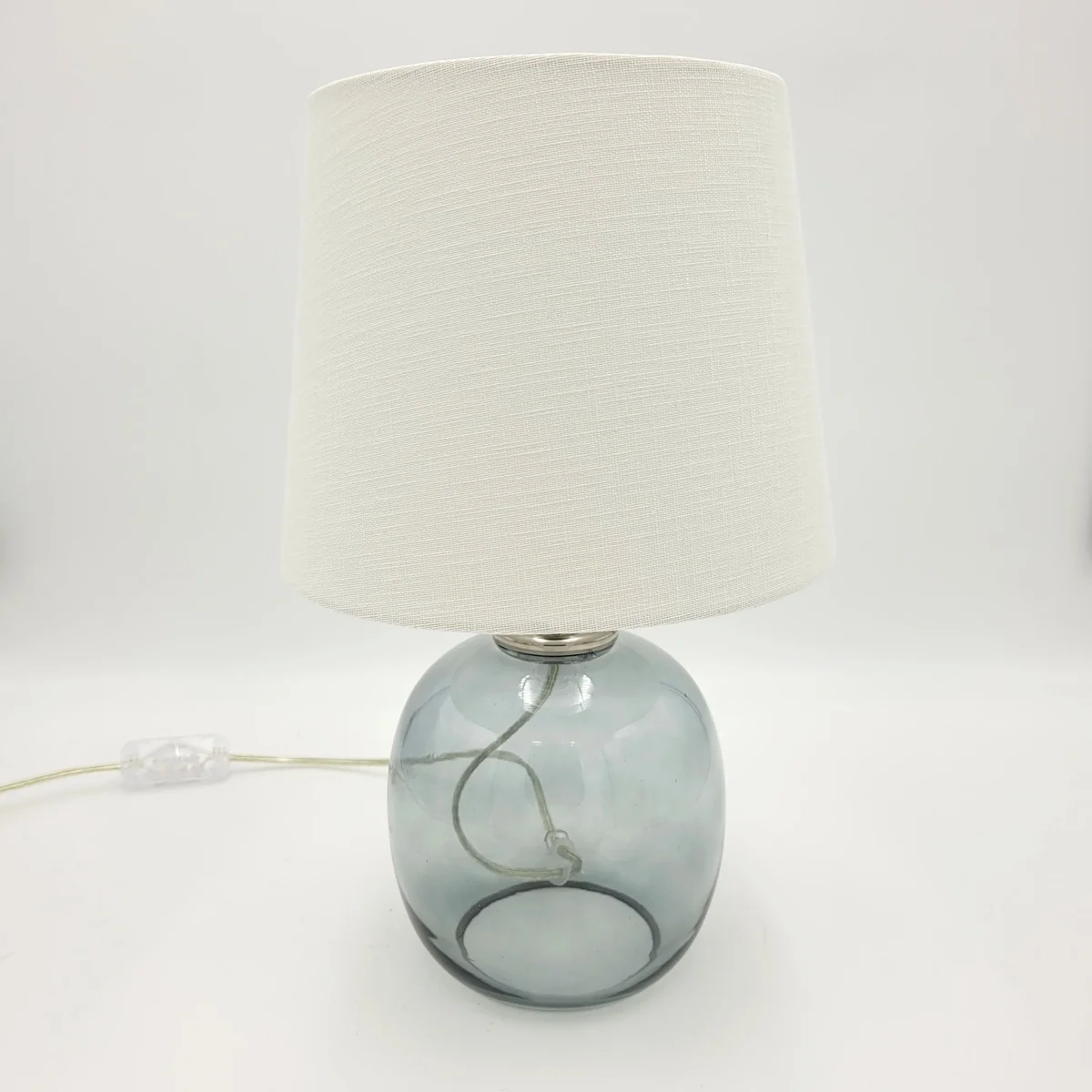 Una lámpara de mesa original y sencilla con la que decorar tu mesita de noche. Una lámpara de cristal azul que tiene el pie transparente. Quedará ideal para mesitas noche o rincones de lectura. Su sencillez y versatilidad la hacen apta para cualquier estilo decorativo.