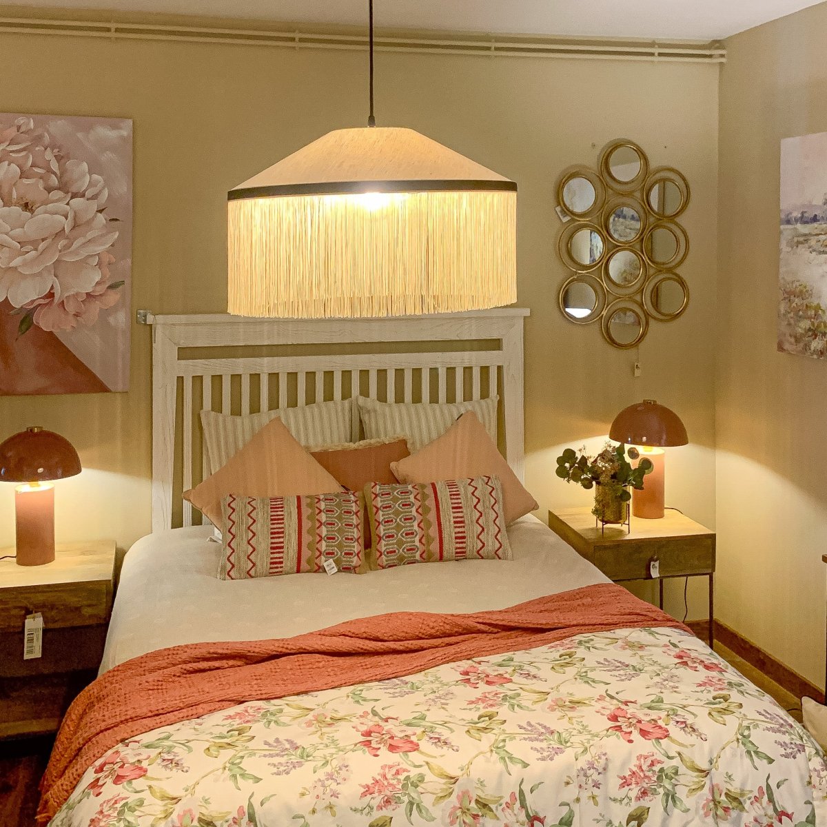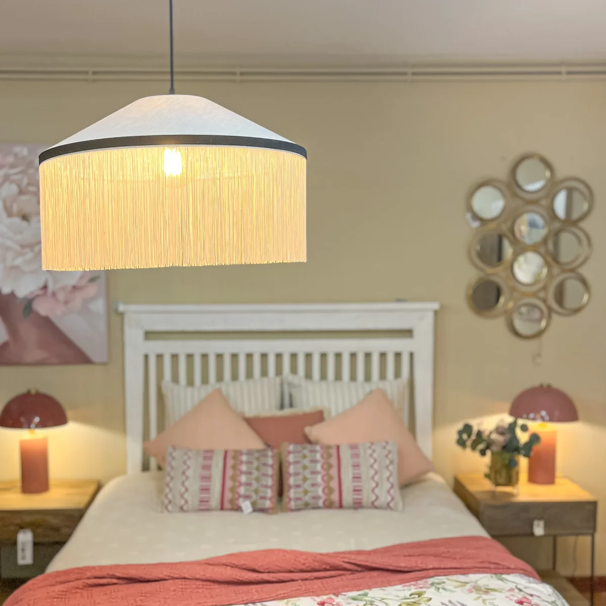 Una lámpara de techo inspirada en el cabaret de los años veinte. Su diseño original en lino llenará tu hogar de exclusividad y estilo a partes iguales. Una lámpara con flecos en tonos blanco y negro, perfecta para combinar con el resto de la decoración. Una lámpara de techo art déco con unas dimensiones de 50×50. Y tú, ¿Te atreves con esta lámpara?