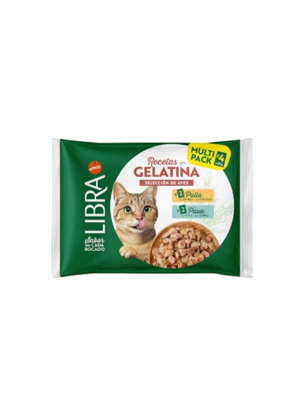 LIBRA CAT BOCADITOS EN GELATINA FLOW PACK 2 CON POLLO Y 2 CON PAVO 85g (15 uds./caja)