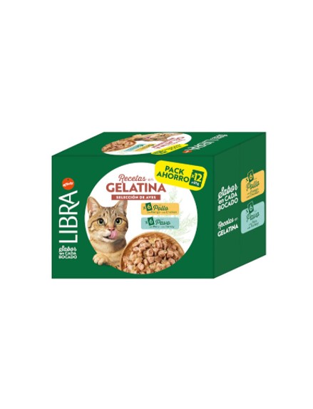 LIBRA CAT BOCADITOS EN GELATINA MULTIPACK AVES 6 CON POLLO Y 6 CON PAVO 85g (4 uds./caja)