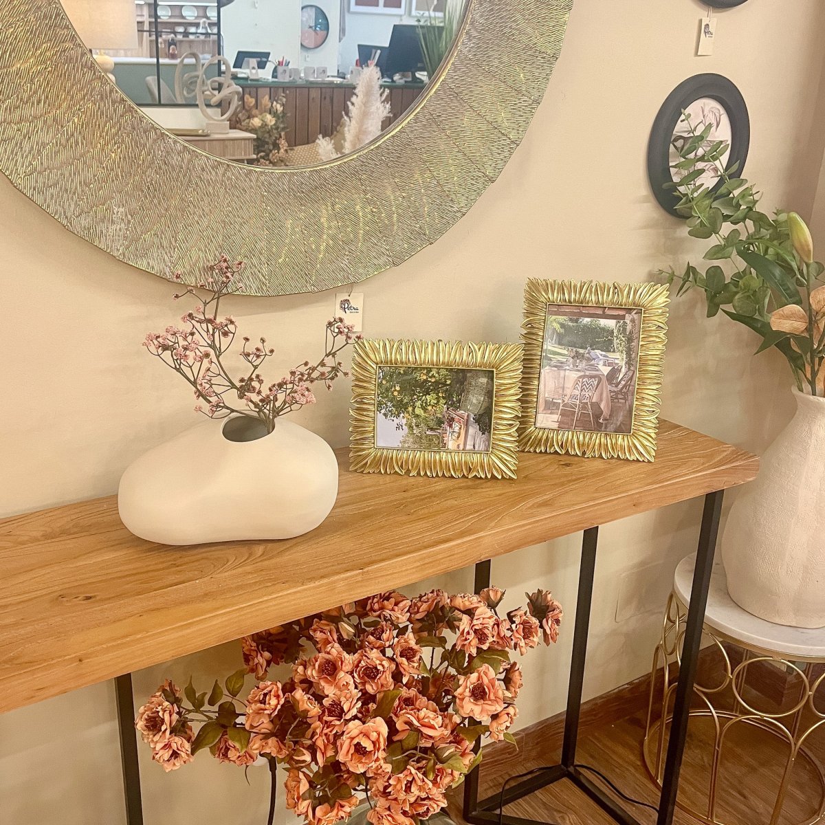 Este marco de fotos dorado en resina combina textura y brillo para resaltar tus recuerdos con estilo. Su diseño detallado, con relieves inspirados en formas naturales, aporta un toque decorativo que encaja en distintos ambientes, desde espacios clásicos hasta modernos. Un portafotos elegante, compatible con fotos de 13×18 cm, es perfecto para decorar estanterías, consolas o mesitas de noche, añadiendo un punto de luz y sofisticación a la estancia. El tamaño indicado es el del tamaño de la fotografía. Combínalo con el tamaño 15×20 para enmarcar tus recuerdos con estilo.