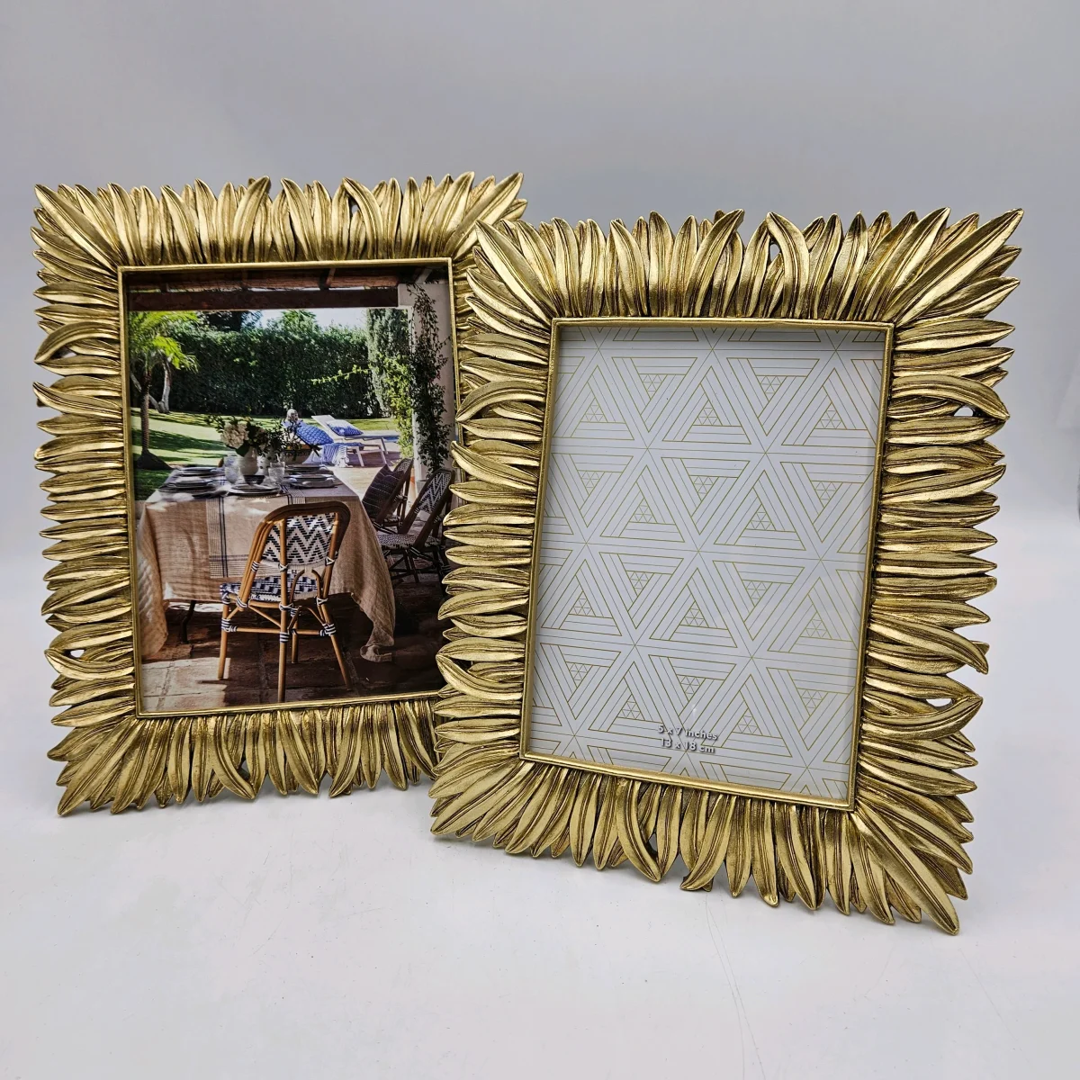 Este marco de fotos dorado en resina combina textura y brillo para resaltar tus recuerdos con estilo. Su diseño detallado, con relieves inspirados en formas naturales, aporta un toque decorativo que encaja en distintos ambientes, desde espacios clásicos hasta modernos. Un portafotos elegante, compatible con fotos de 15×20 cm, es perfecto para decorar estanterías, consolas o mesitas de noche, añadiendo un punto de luz y sofisticación a la estancia. El tamaño indicado es el del tamaño de la fotografía. Combínalo con el tamaño 13×18 para enmarcar tus recuerdos con estilo.