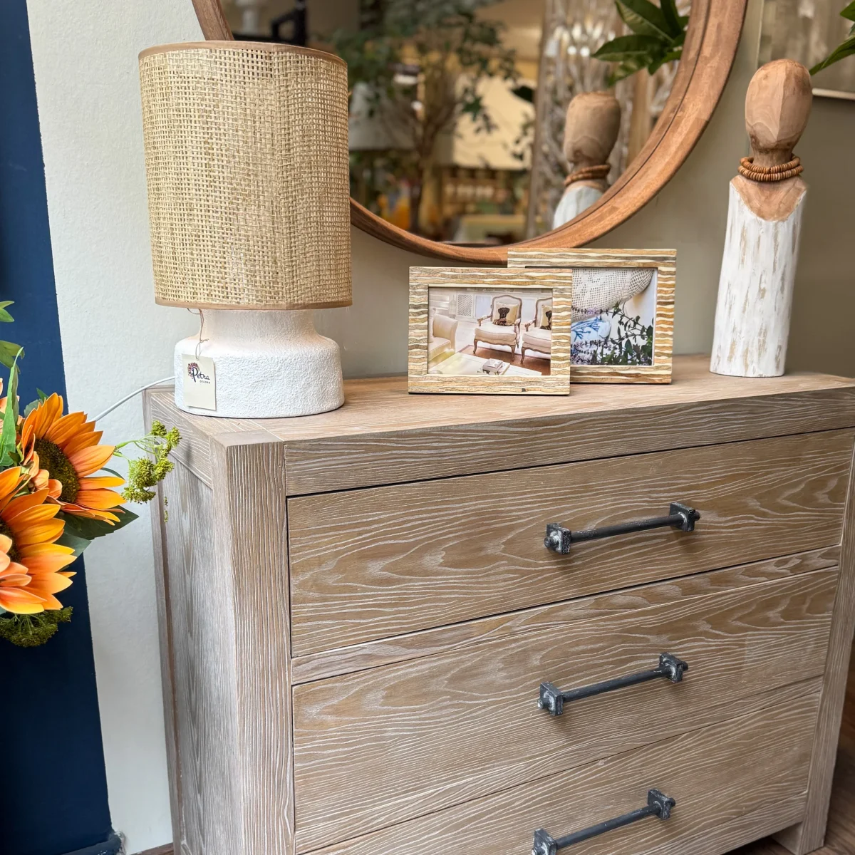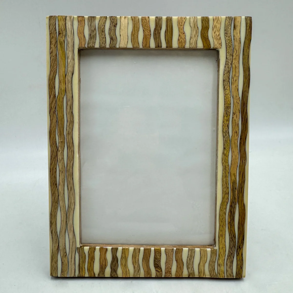 Un marco de fotos fabricado en madera de mango y cristal con un relieve original enf roma de ondas y con unas dimensiones de 16×1,8×21 cm para fotos de tamaño 13×18 cm. Un portafotos de madera disponible también en tamaño 15×20 cm para enmarcar tus mejores recuerdos con estilo y personalidad.