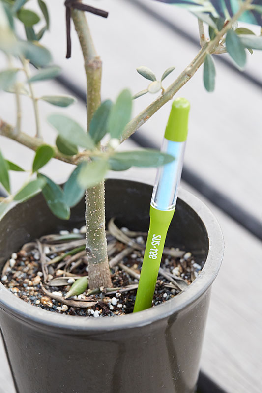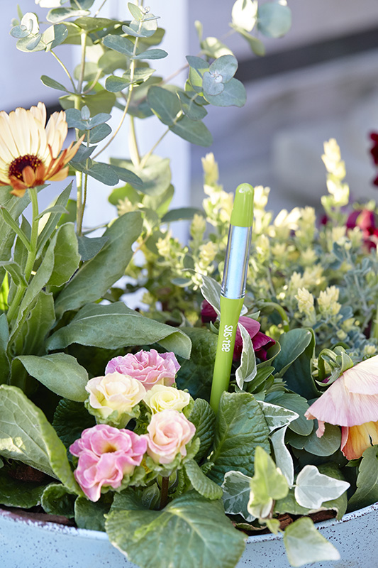 Por primera vez, se ha equipado un medidor de humedad doméstico con un indicador de pF (capacidad de agua disponible). De esta manera, la capacidad de la raíz para absorber agua, o la de la planta, se hace visible.
