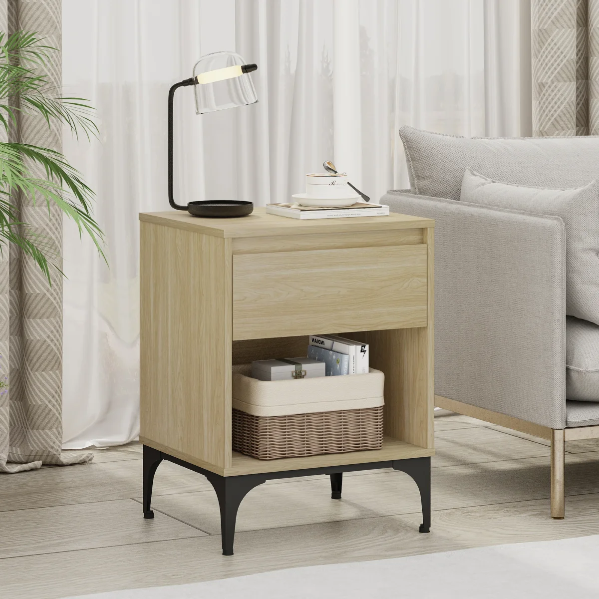 Además, la mesa cuenta con un cajón integrado donde se pueden guardar discretamente objetos personales. Justo debajo hay un compartimento abierto ideal para almacenar libros, revistas y otros utensilios.