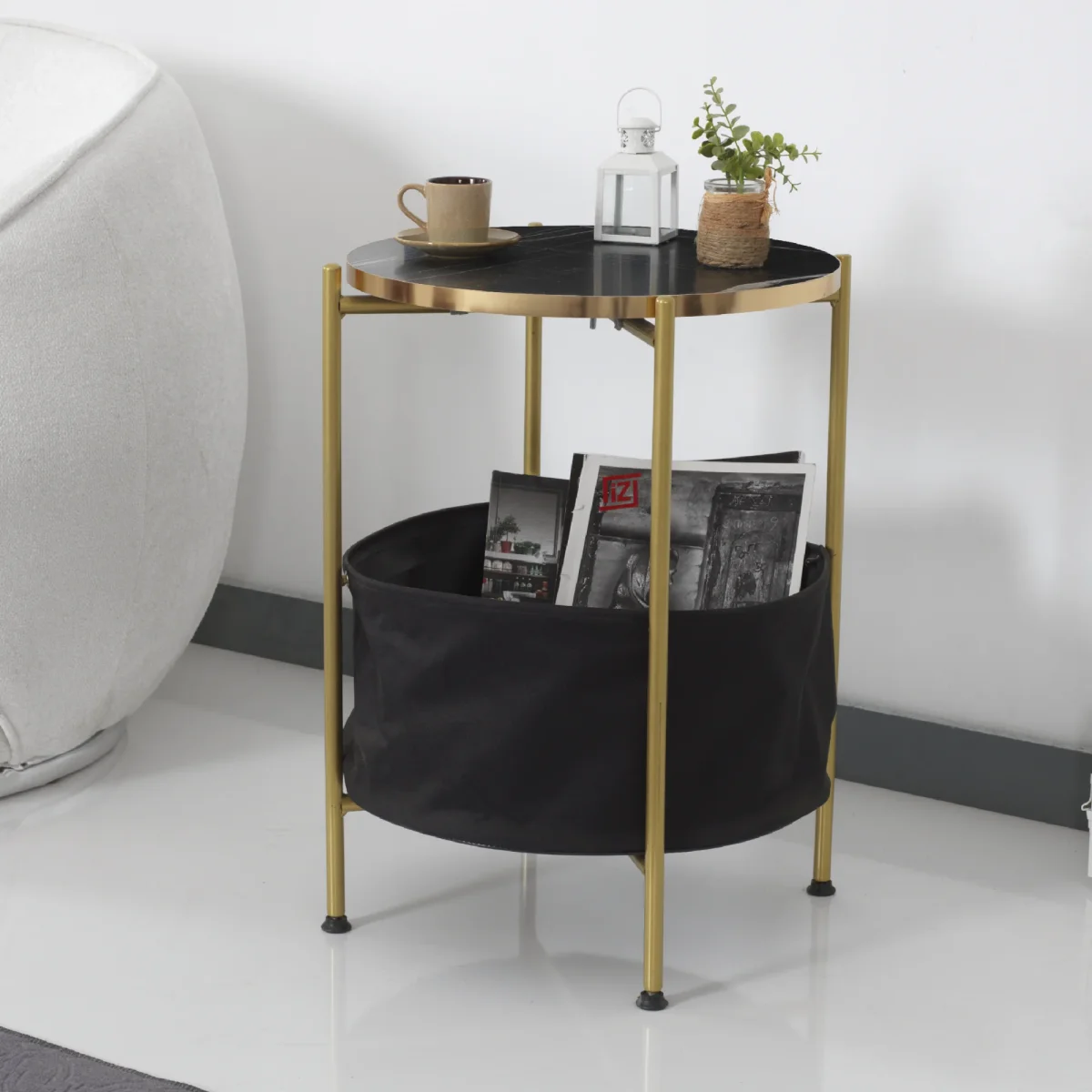 Esta mesa auxiliar original es versátil. Con su diseño atemporal, encaja perfectamente, por ejemplo, en su sala de estar. La cesta inferior ofrece además un espacio de almacenamiento para todo tipo de objetos.