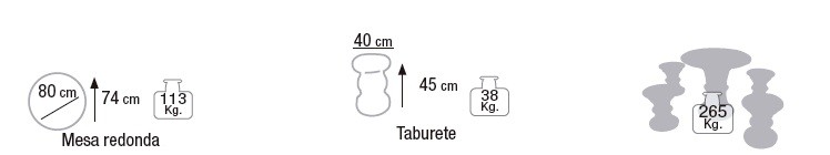 Los taburetes tienen 40 cm de alto y pesan solamente 38 kg. Se trata de un conjunto de pequeñas dimensiones que se puede instalar fácilmente en cualquier rincón del jardín.